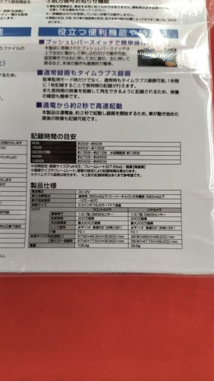 前後2カメラ式ドライブレコーダーです。 |