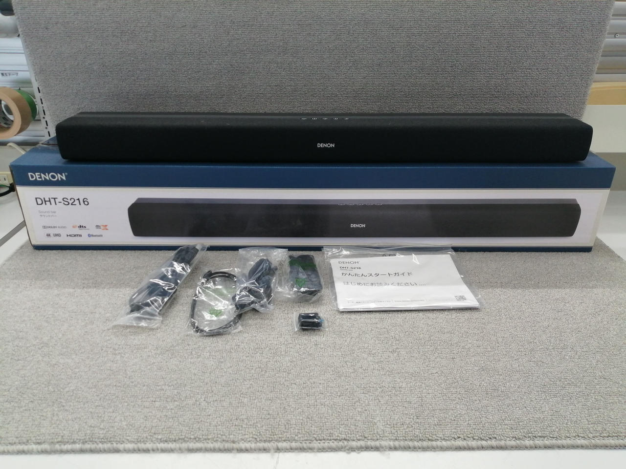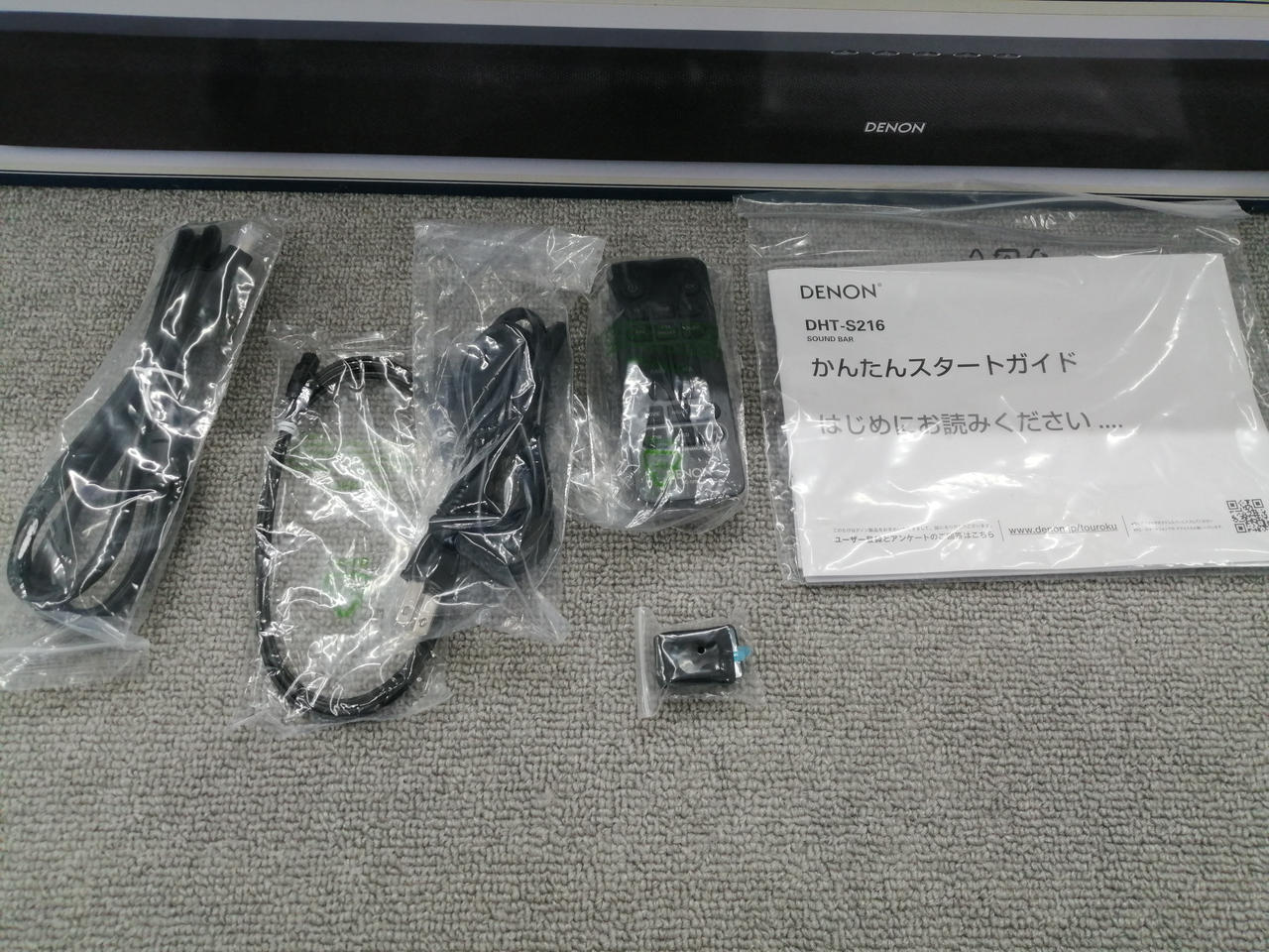 外箱、電源ケーブル、光ケーブル、HDMIケーブル、壁掛け用部品、リモコン |