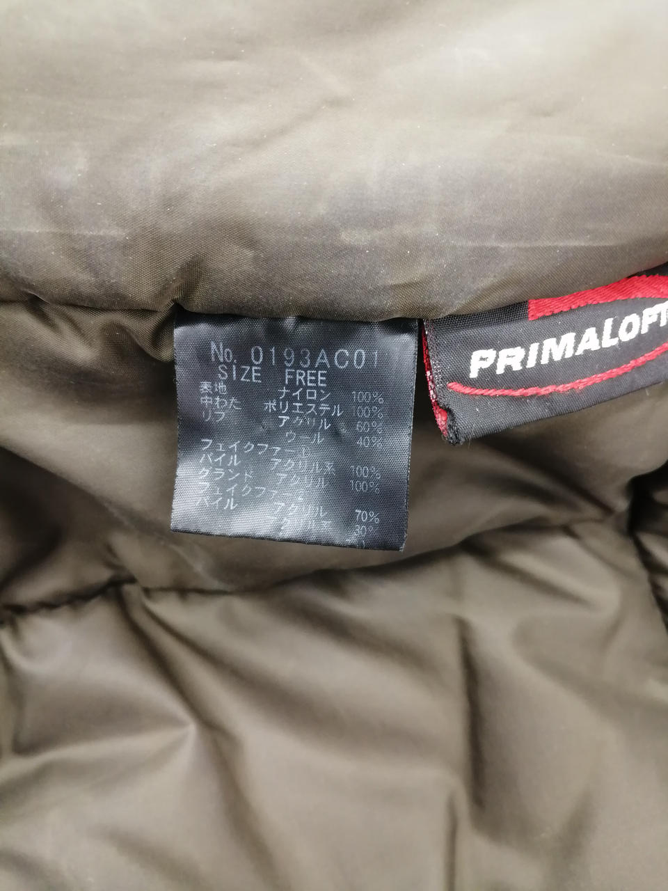 中綿:ポリエステル(プリマロフト) |