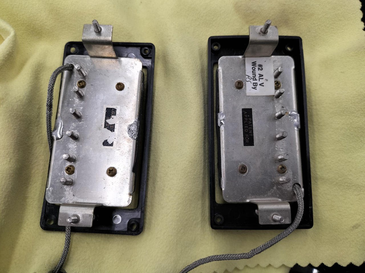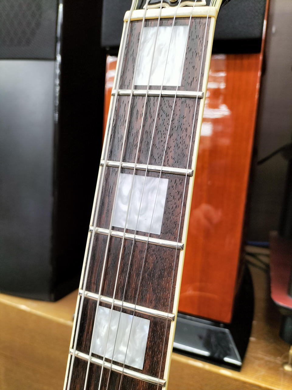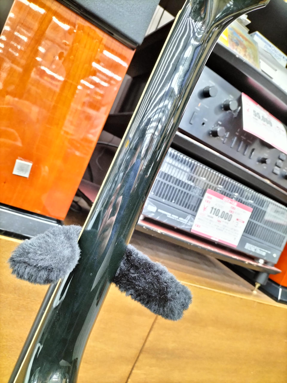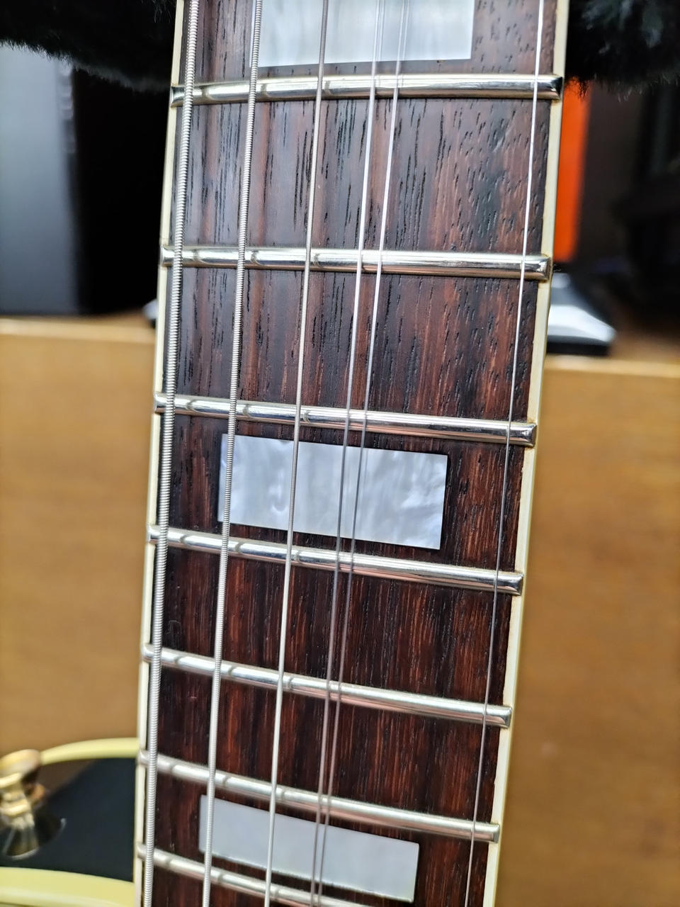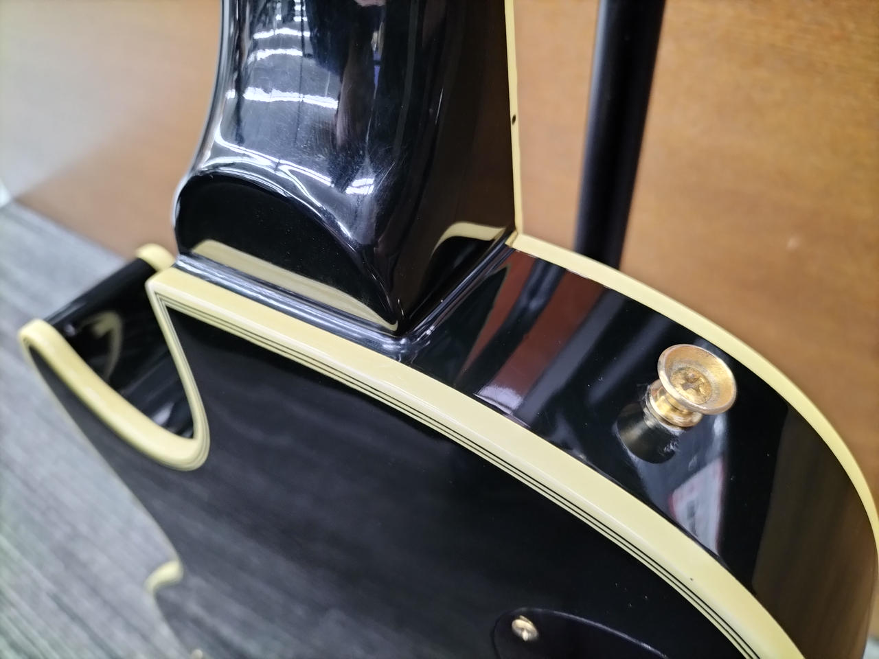 元のペグ、テールピース、ピックアップカバー、ロッドカバーフロントエスカッション、コンデンサ×2付属します。 |