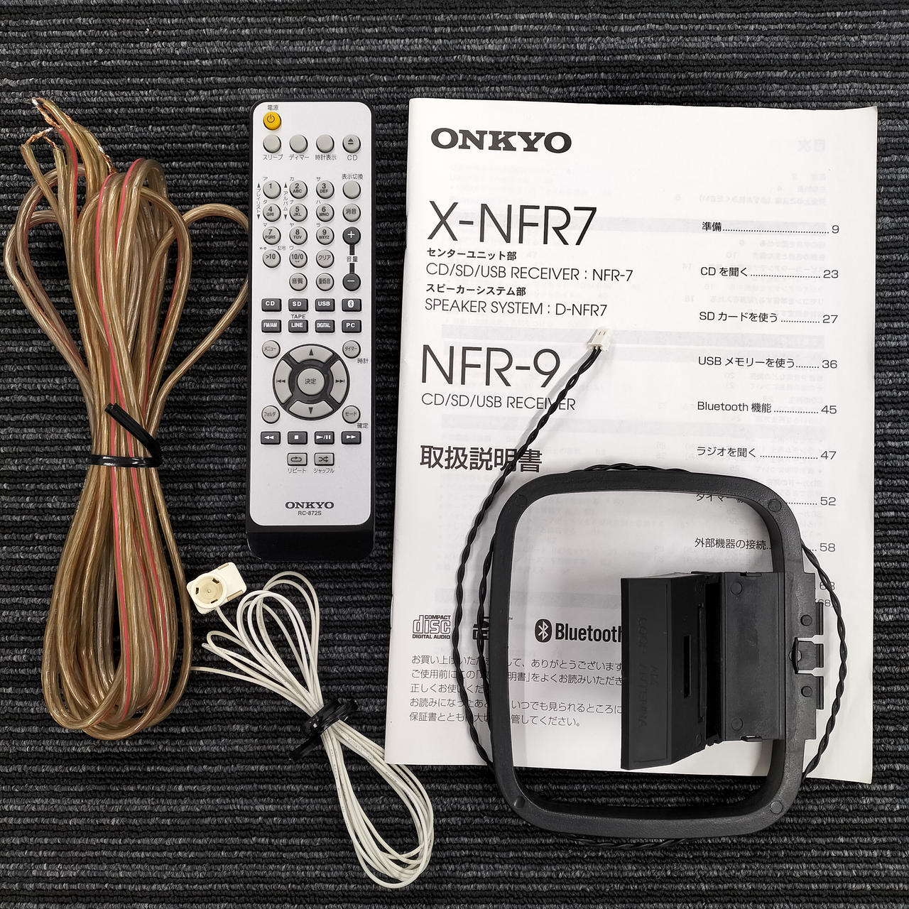取扱説明書、リモコン、スピーカーケーブル、AMアンテナ、FMアンテナ |