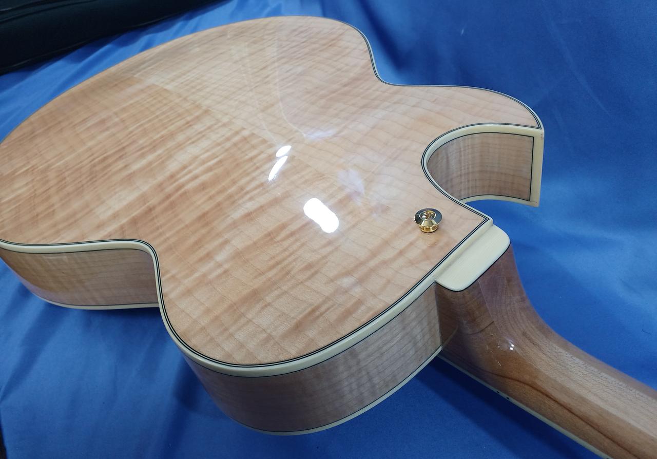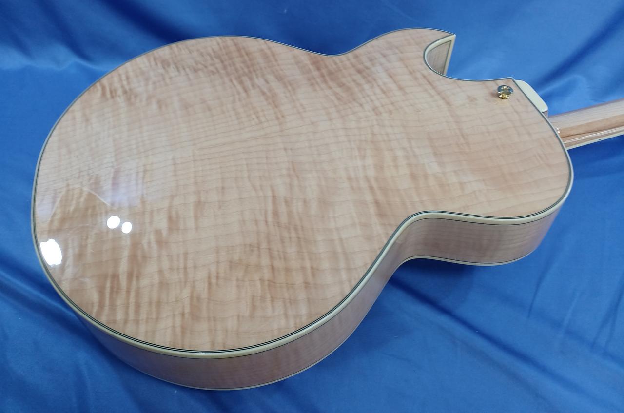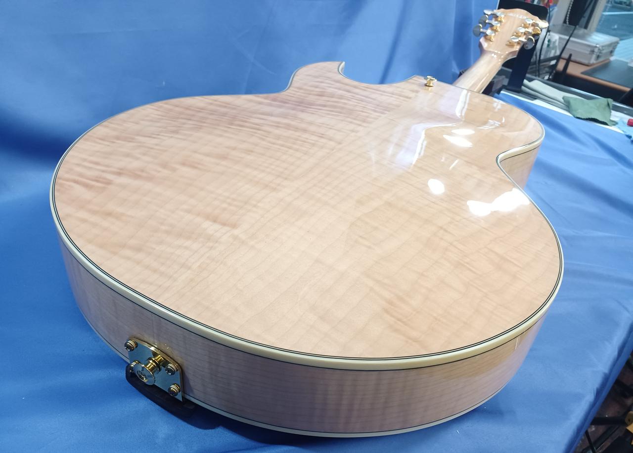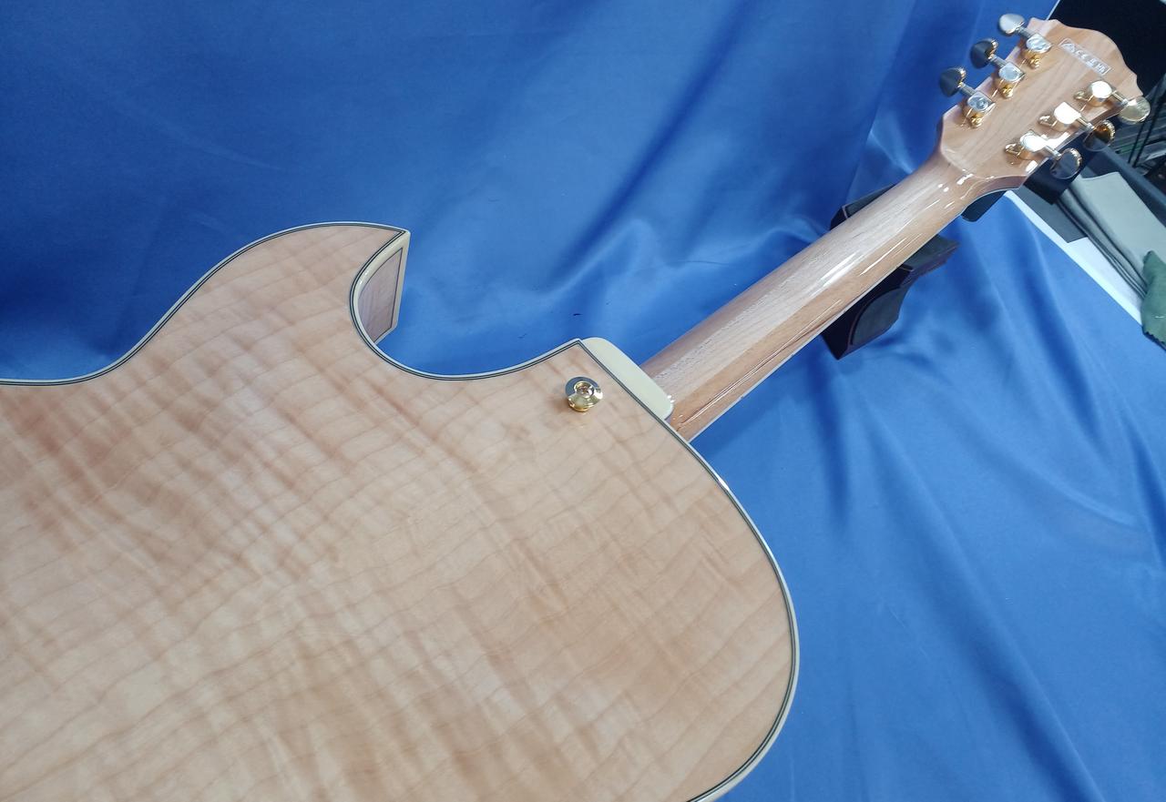 ボディ・トップ材はスプルースを使用、サイド & バック材は杢目が美しいフレームメイプルと豪華な仕様! |