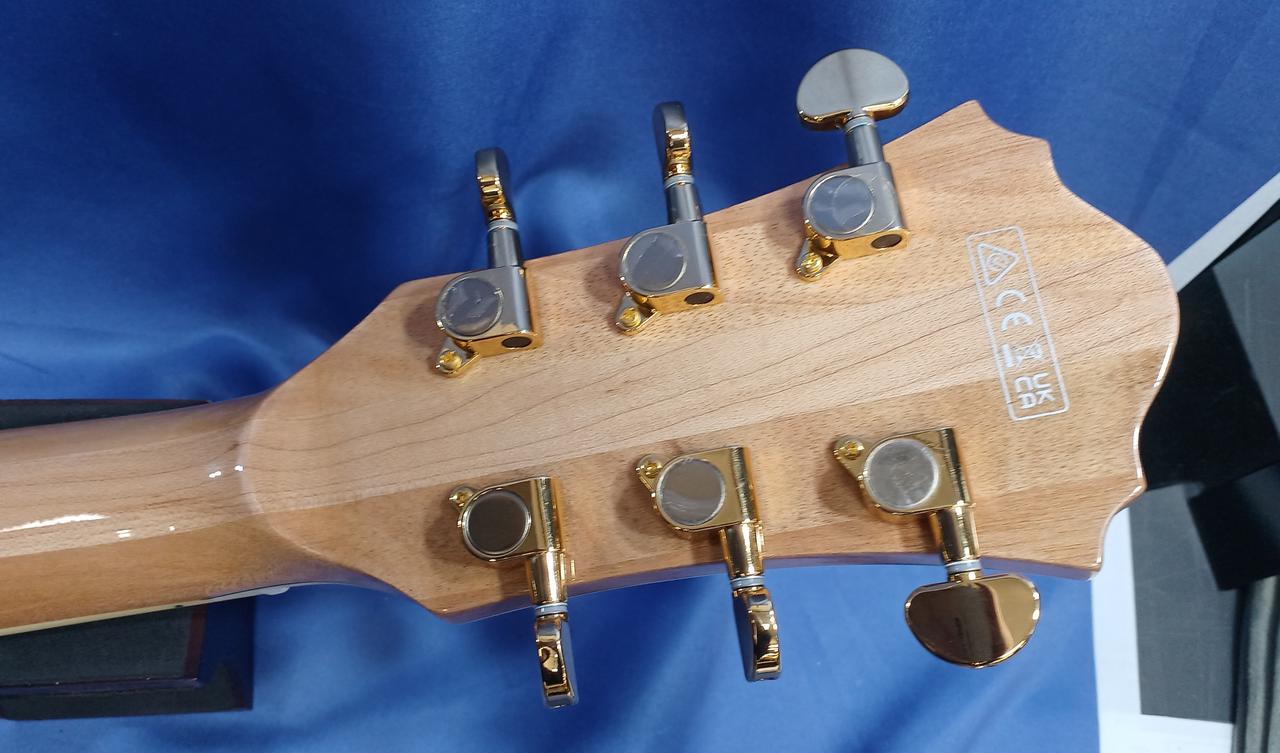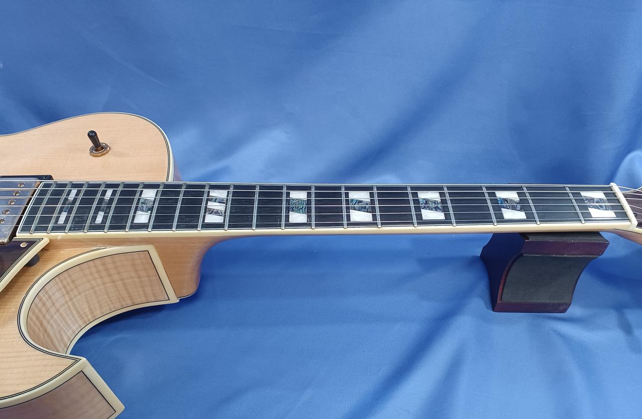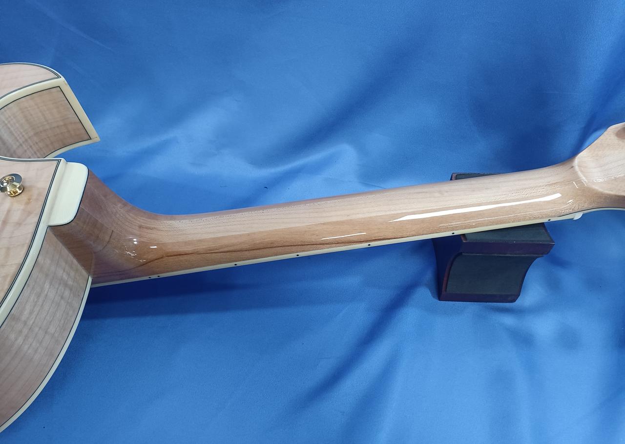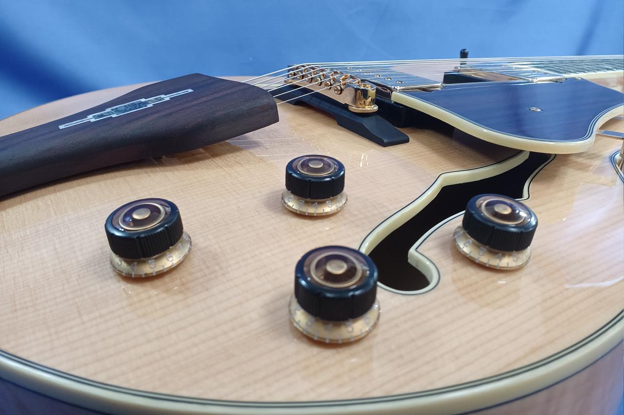 ボディ・トップ材はスプルースを使用、サイド & バック材は杢目が美しいフレームメイプルと豪華な仕様! |