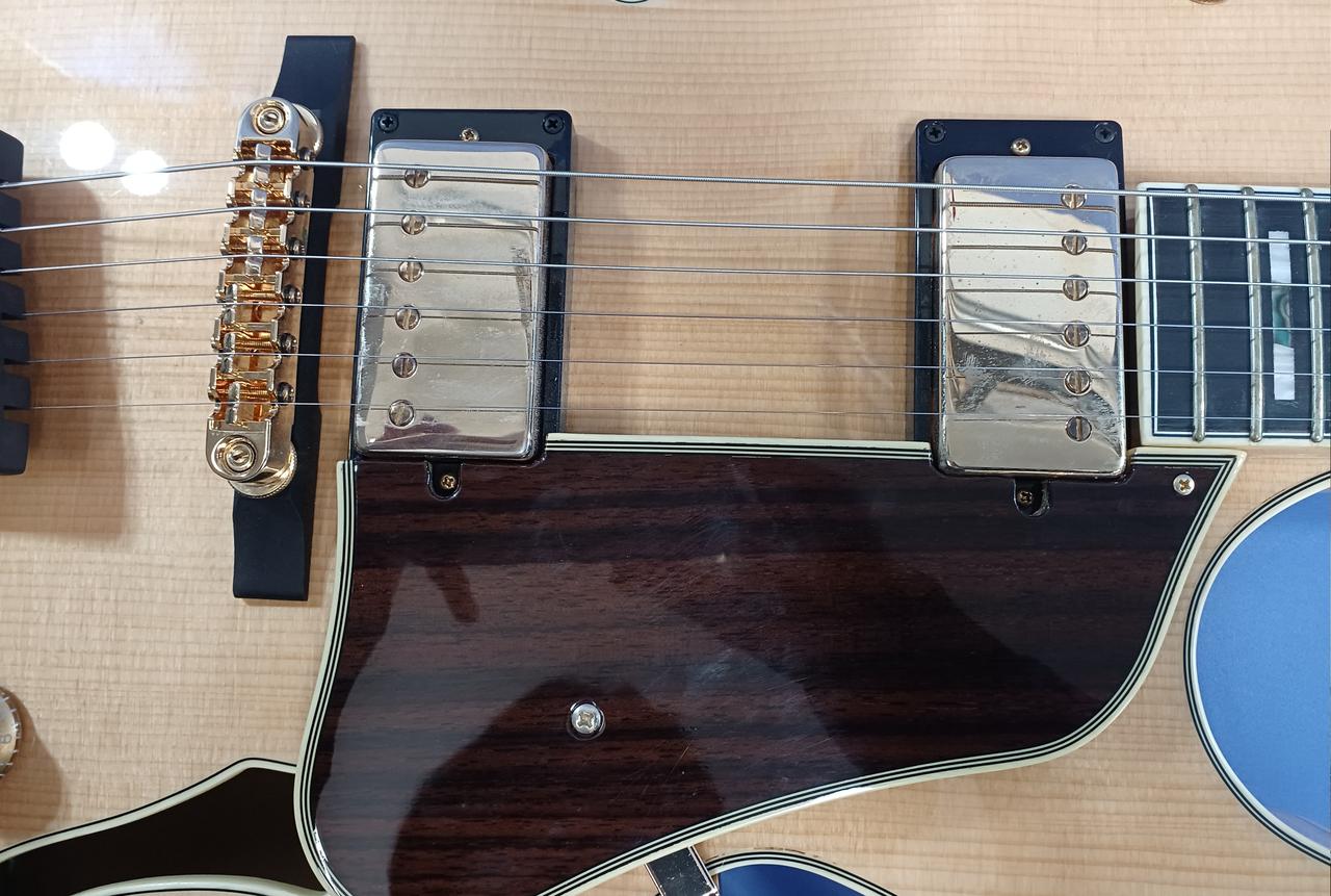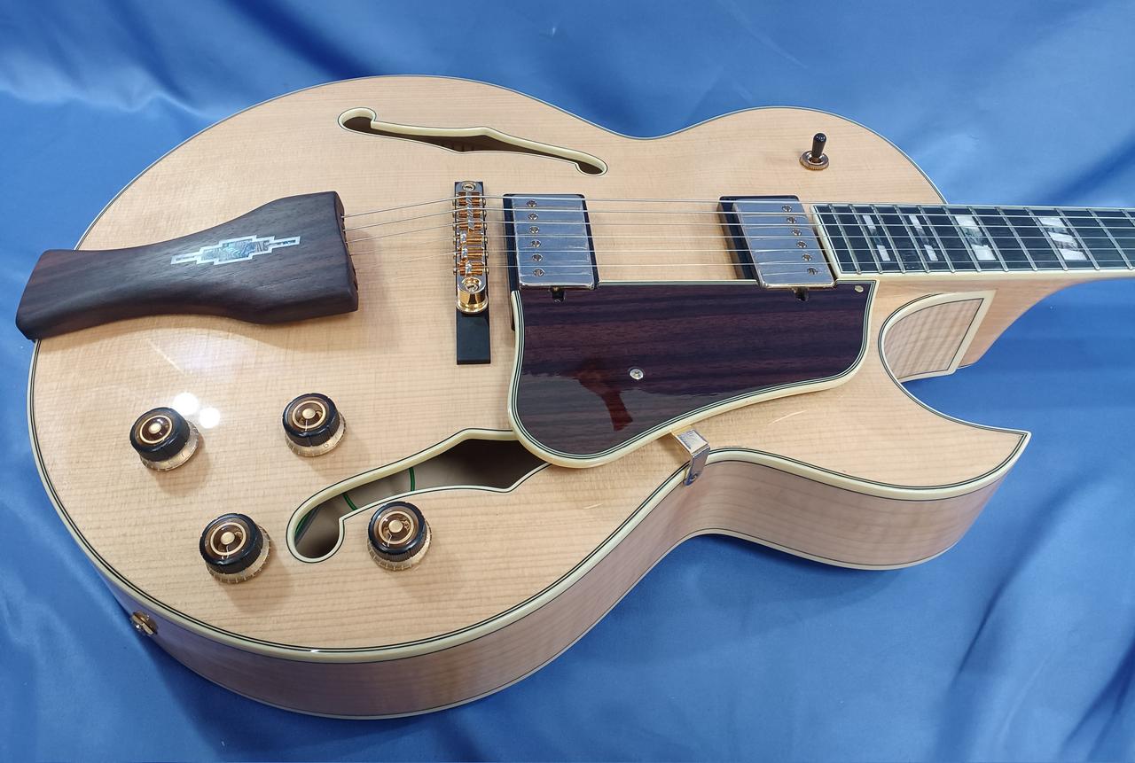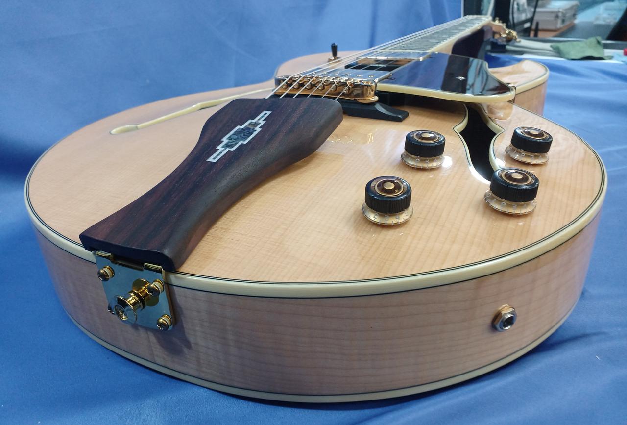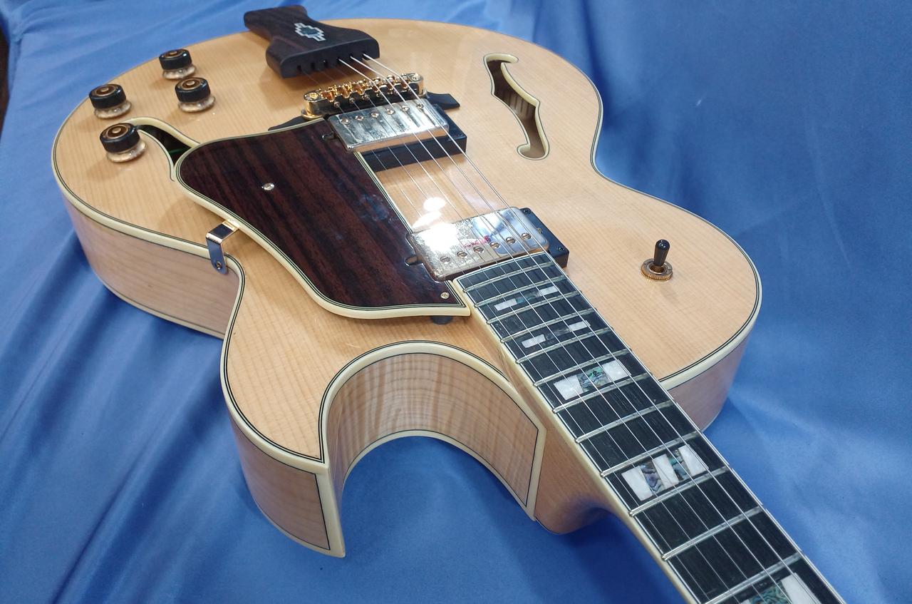 ボディ・トップ材はスプルースを使用、サイド & バック材は杢目が美しいフレームメイプルと豪華な仕様! |