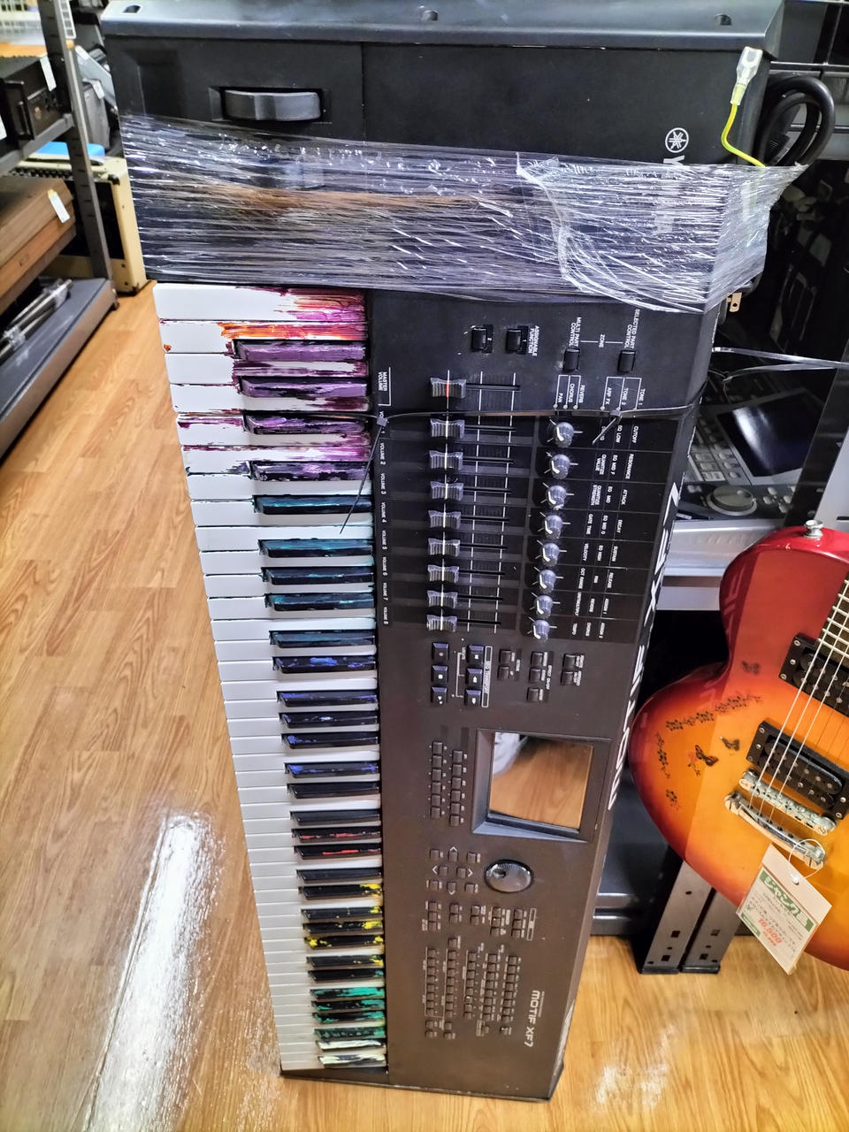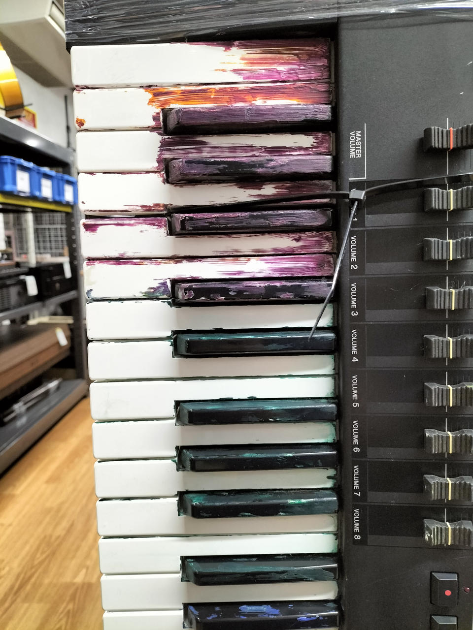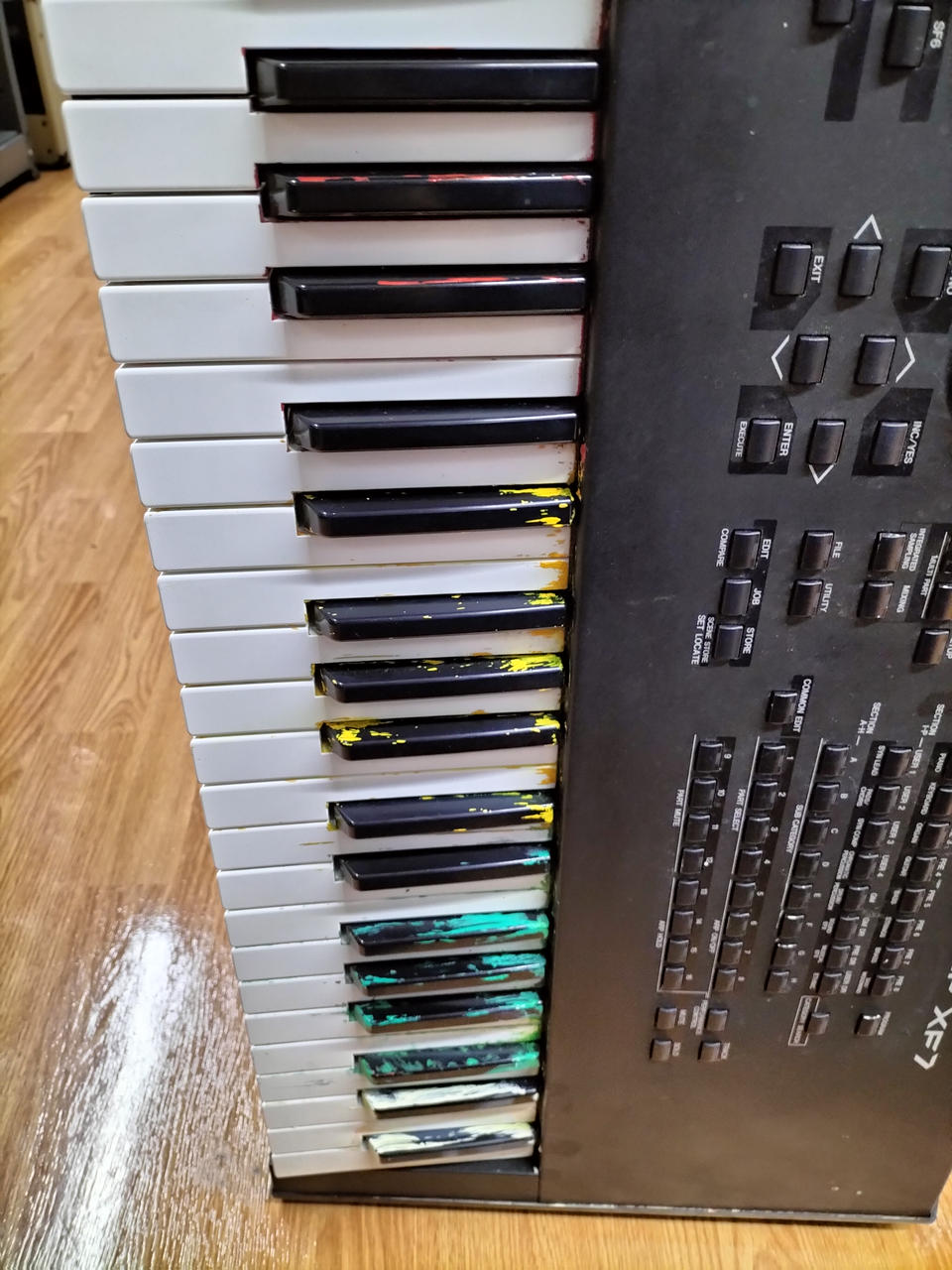 鍵盤にペンキの跡があります。 |