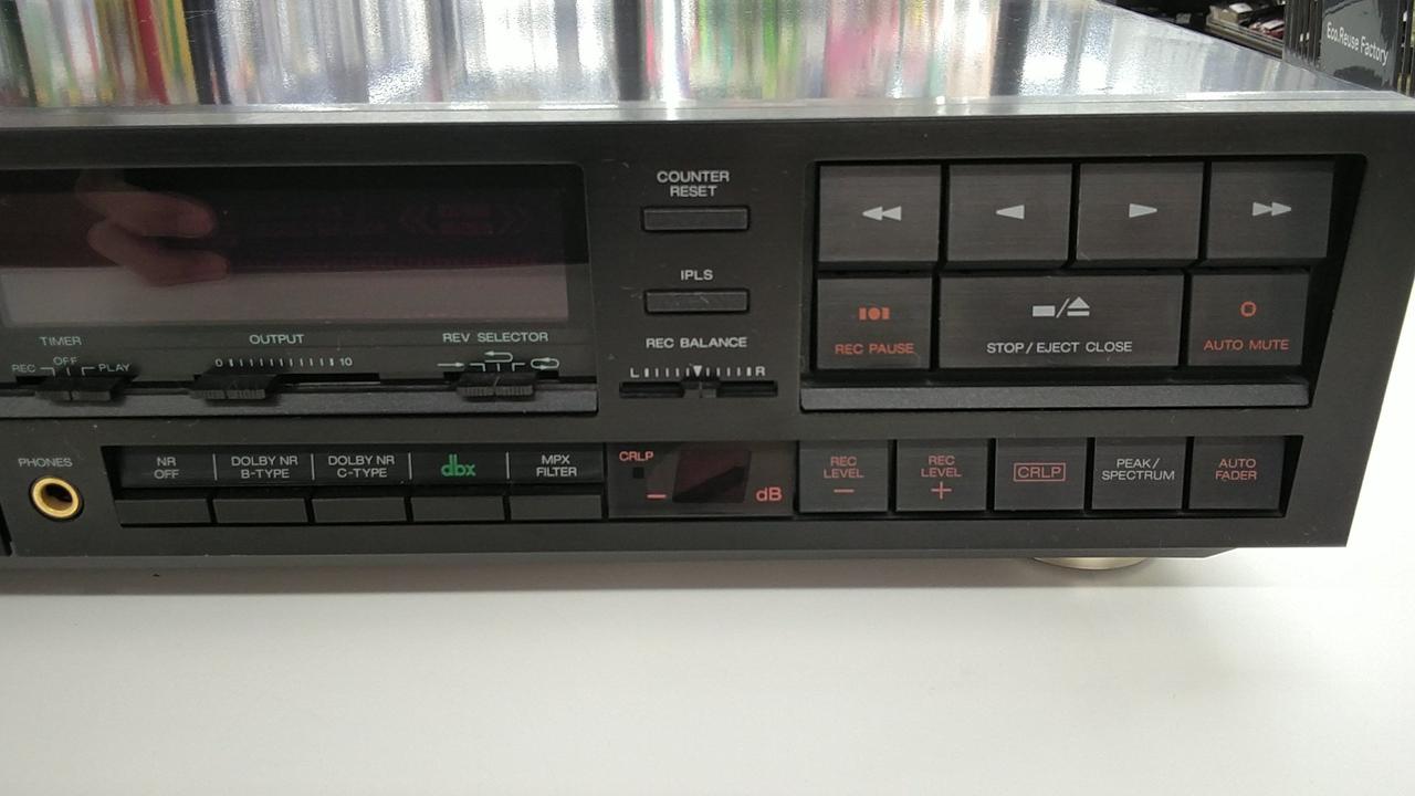 上位機種であるGX-R75CXから一部の機能が省略されたカセットデッキオートリバース対応 録再:LC-OFCツインフィールドスーパーGXヘッド |