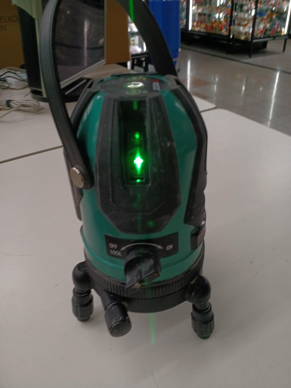 照射パターン:垂直4本/水平110°/地墨点 作業範囲:約10M/屋内 約25M本体回転範囲:360°電源:単三4本 精度:水平垂直±1MM |