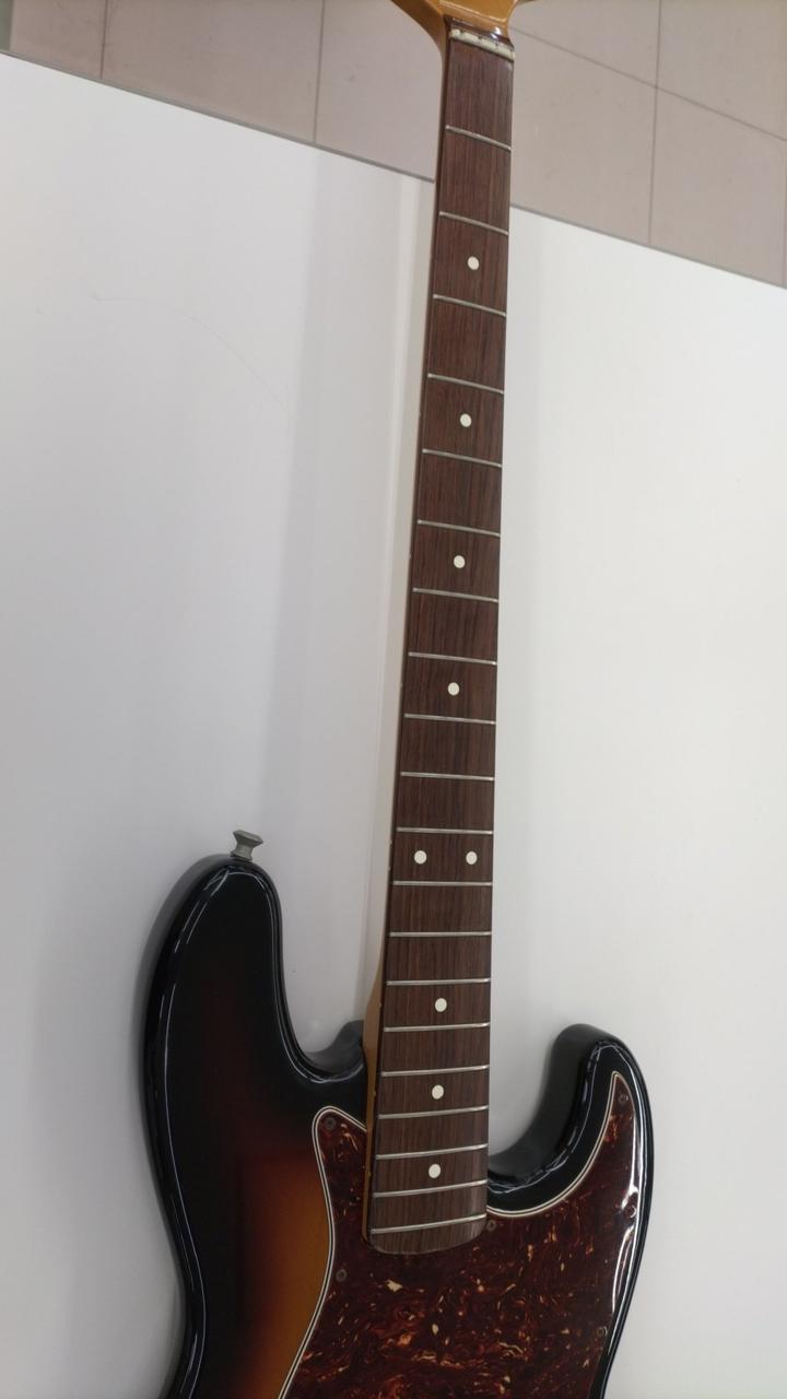 両ピックアップともに音出ました。ネックポケットに大きいクラックあり。トラスロッドが固く、回りません。本体のみ。ジャンク品につき保証無しの商品となります。
