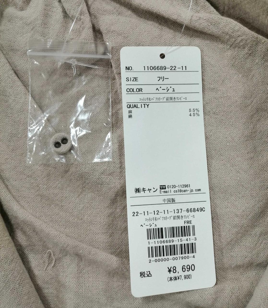 サマンサモスモスのコットンリネンパフスリーブ前開きワンピースです。 |
