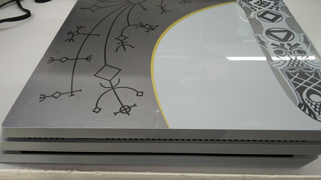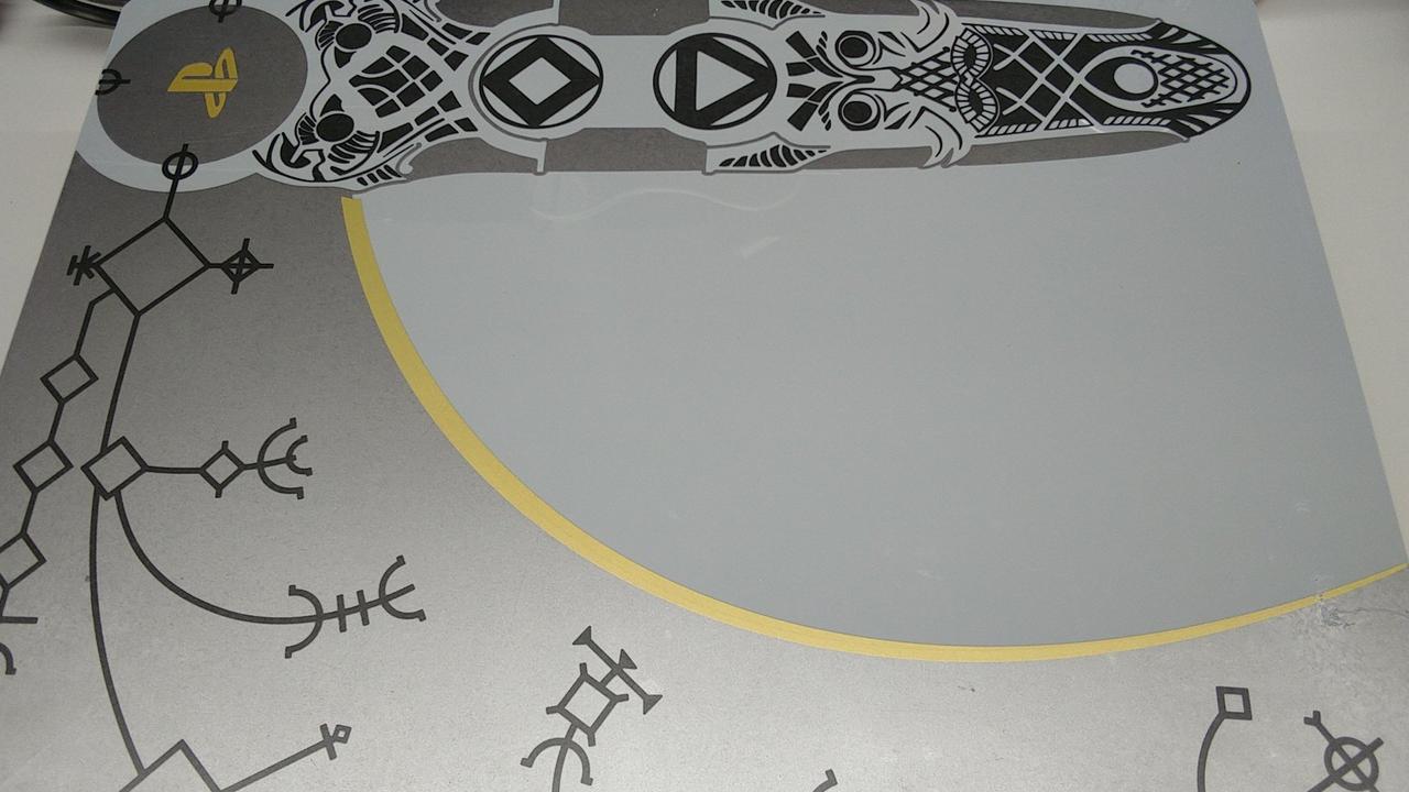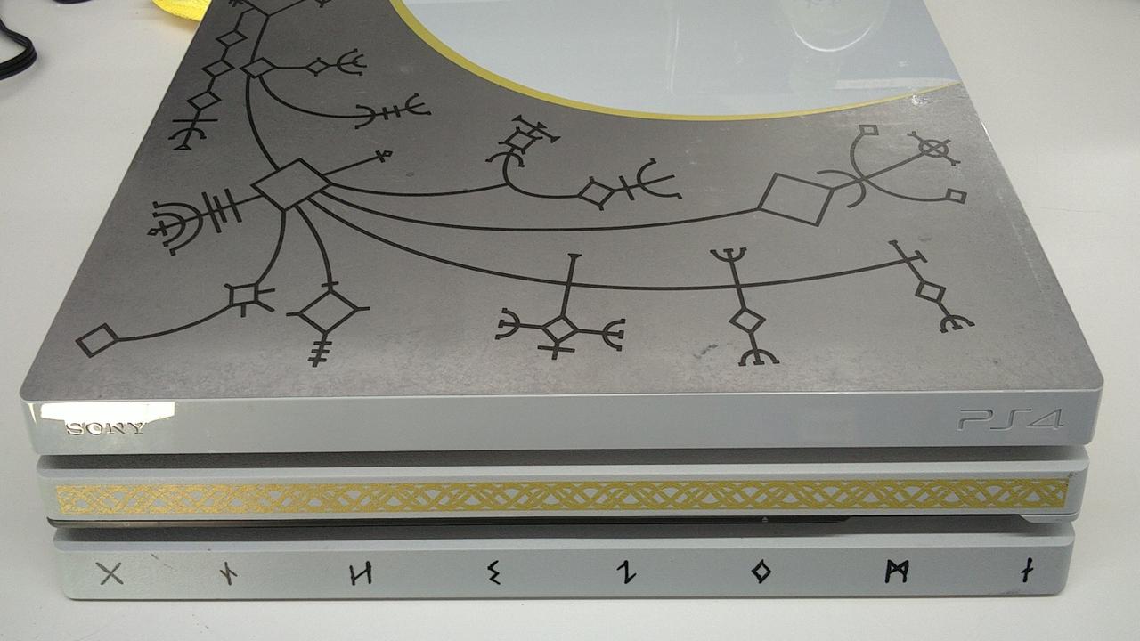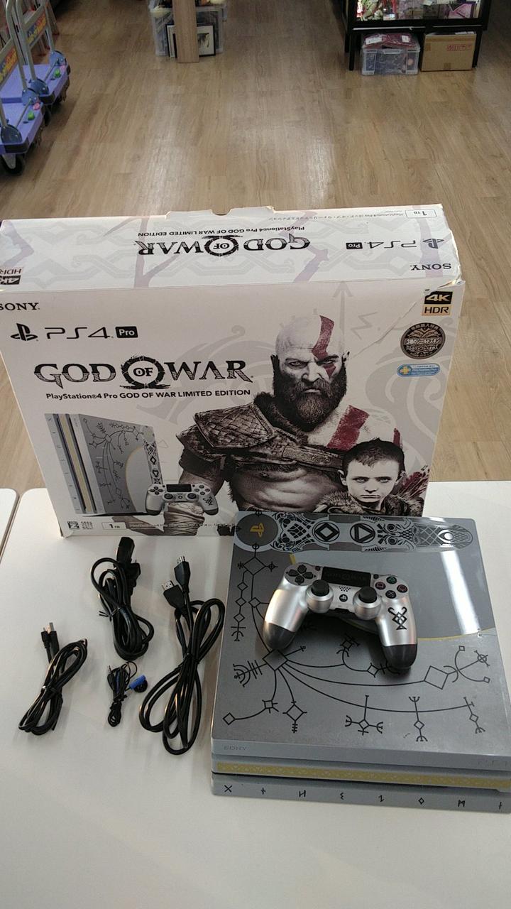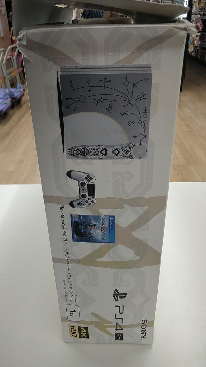 容量1TB 『ゴッド・オブ・ウォー』の特別デザインモデル 箱、本体、コントローラーのデザインが特別仕様です! |