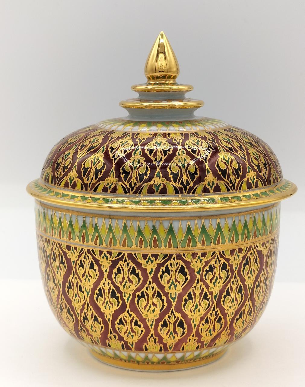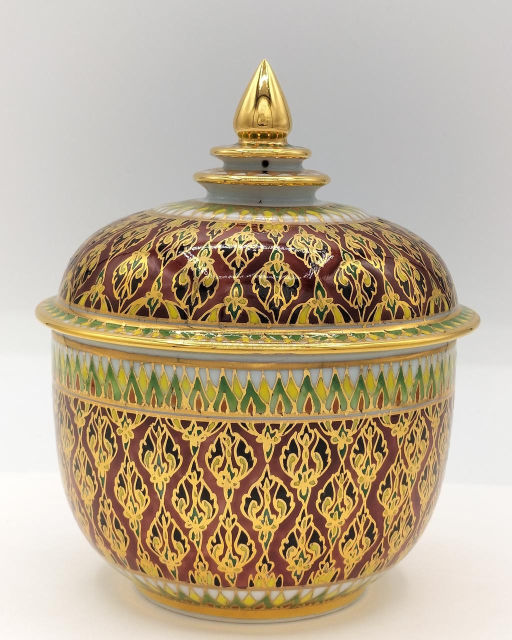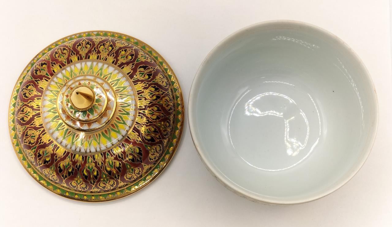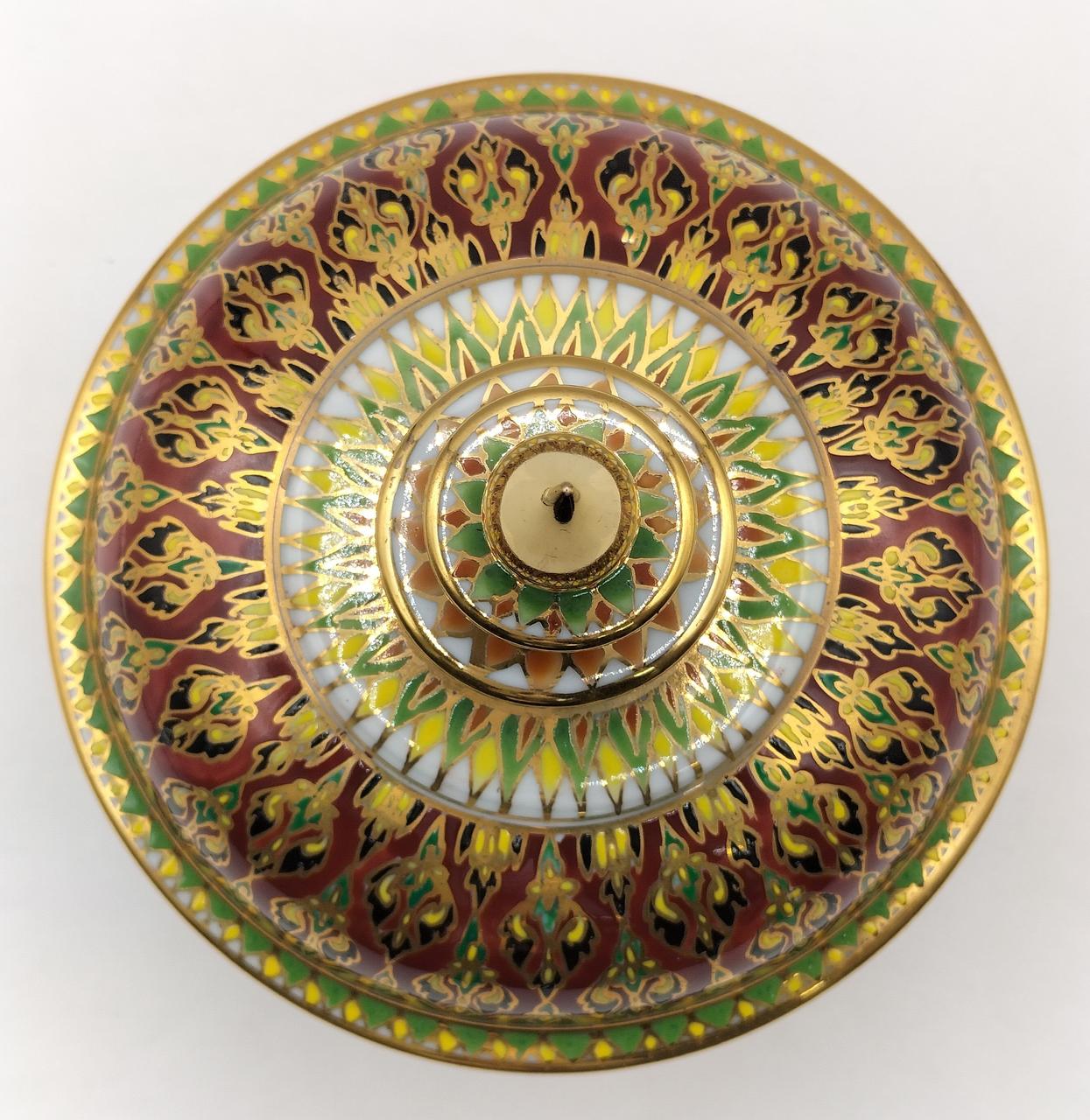 タイの伝統的な装飾が施された、エキゾチックな色彩が美しいベンジャロン焼です。 |