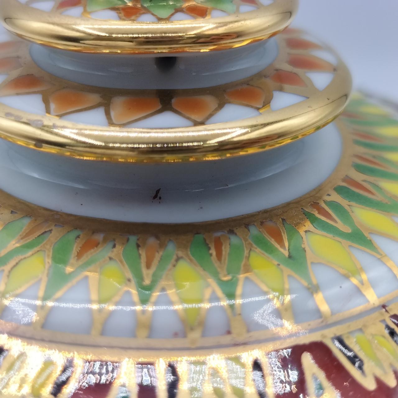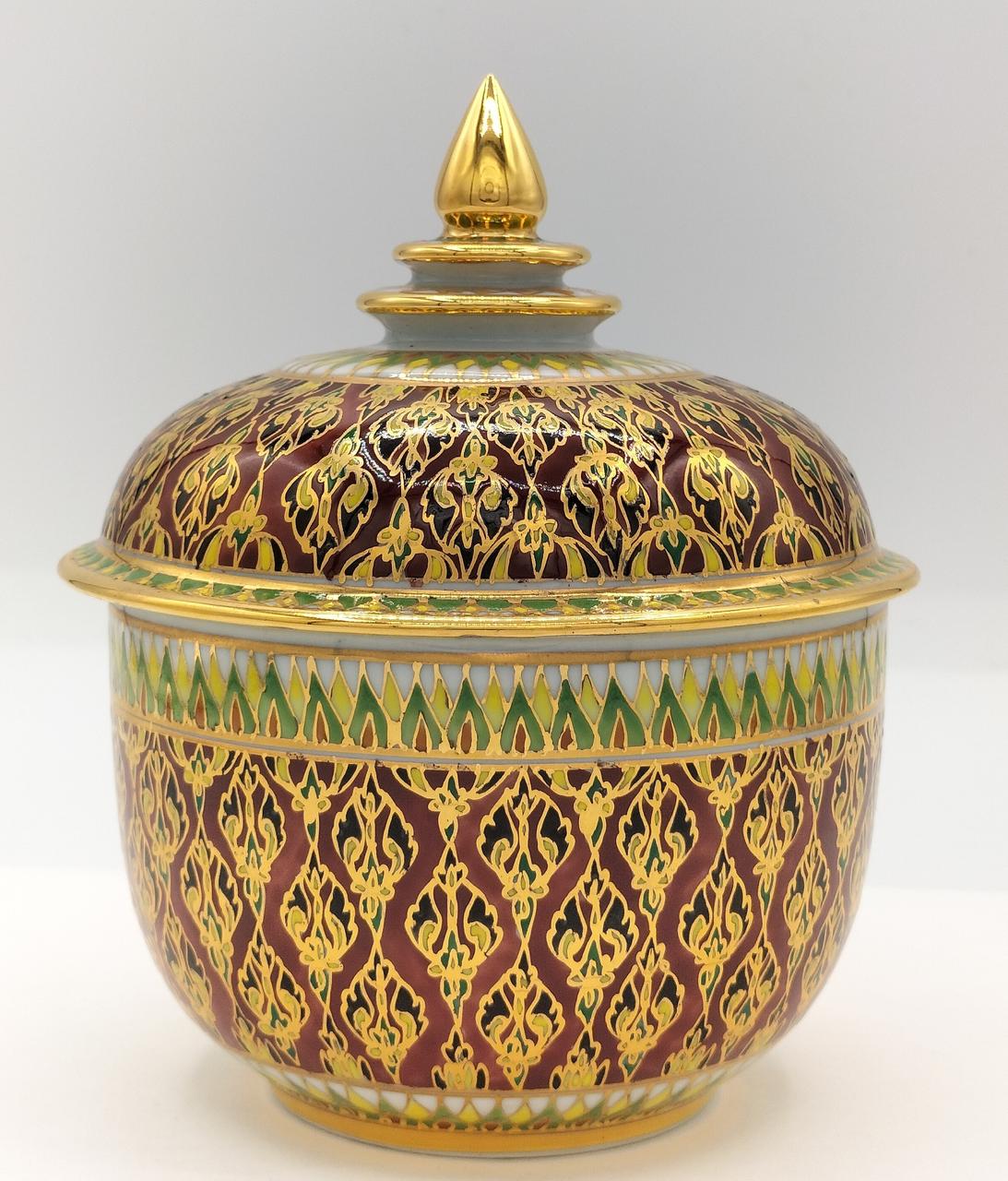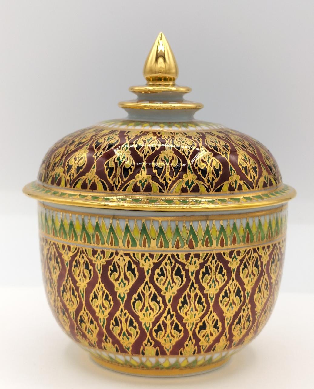 タイの伝統的な装飾が施された、エキゾチックな色彩が美しいベンジャロン焼です。 |