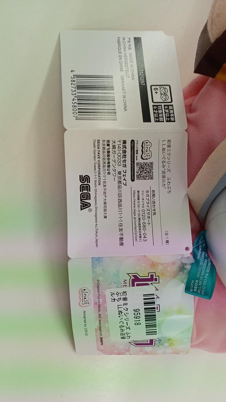 巡音ルカのプライズぬいぐるみです。タグに別途シールが張られています。写真のものが全てですので、写真の状態をご確認の上ご検討お願いいたします。