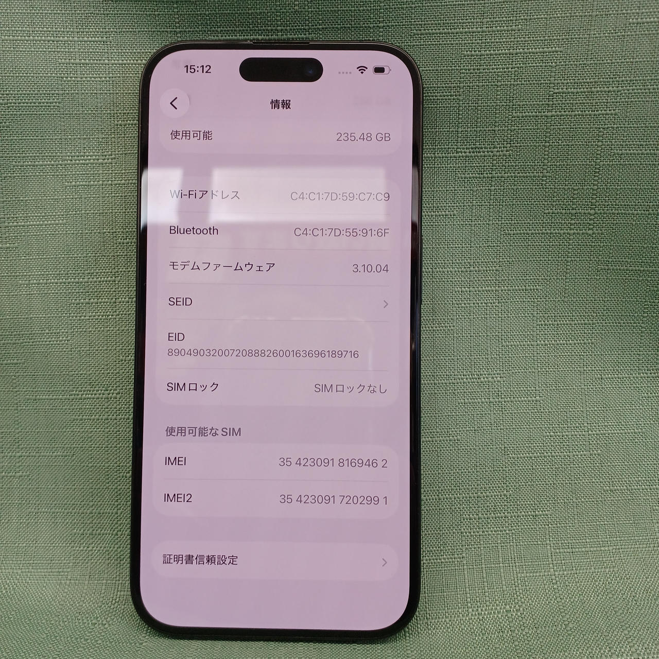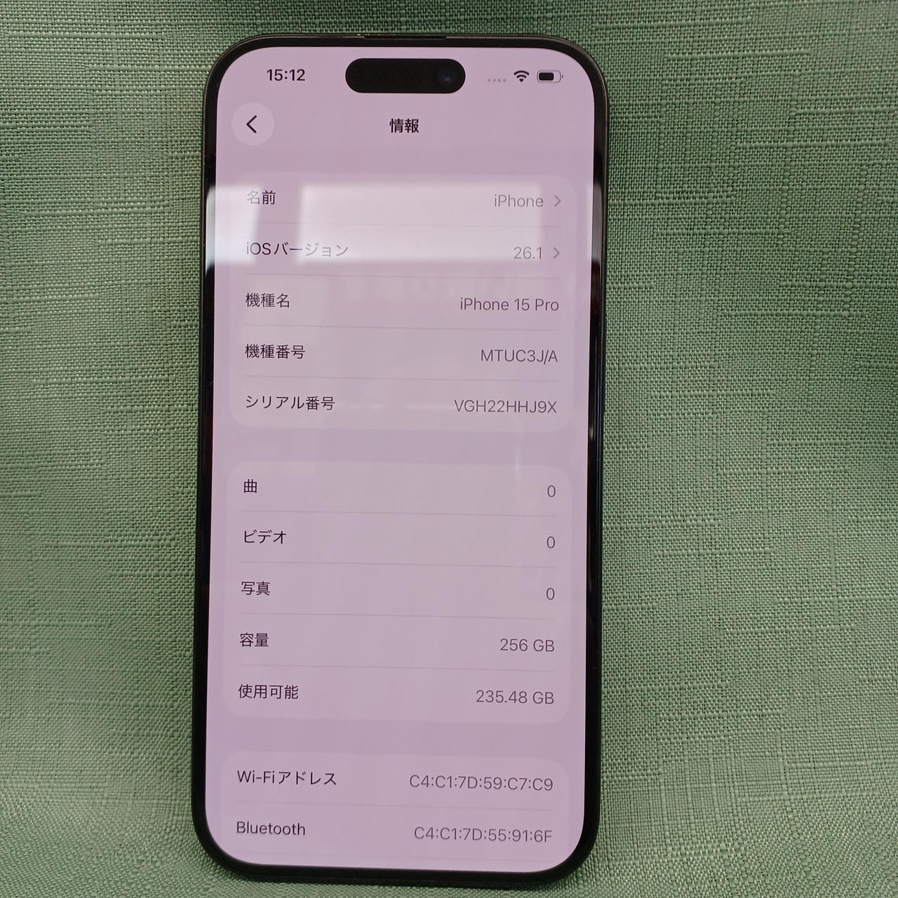 SIMフリー 容量:256GB iOS26.1 バッテリー最大容量:86% |