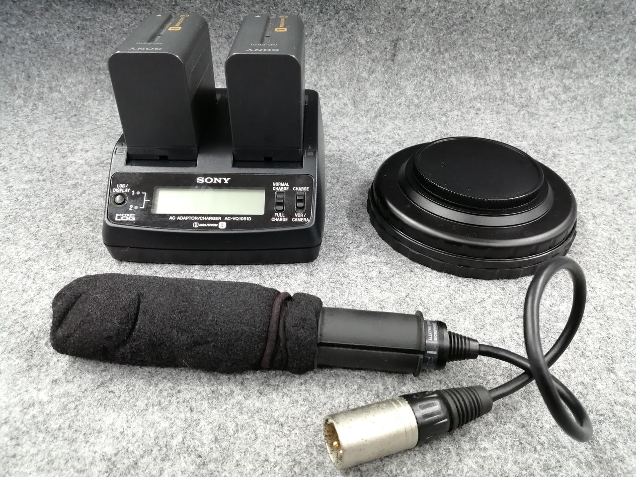 魚眼レンズ、バッグ(内部ヨゴレ多)、バッテリー×2、充電器、リモコン、マイク(スポンジボロボロ)、フード、他パーツ類 |