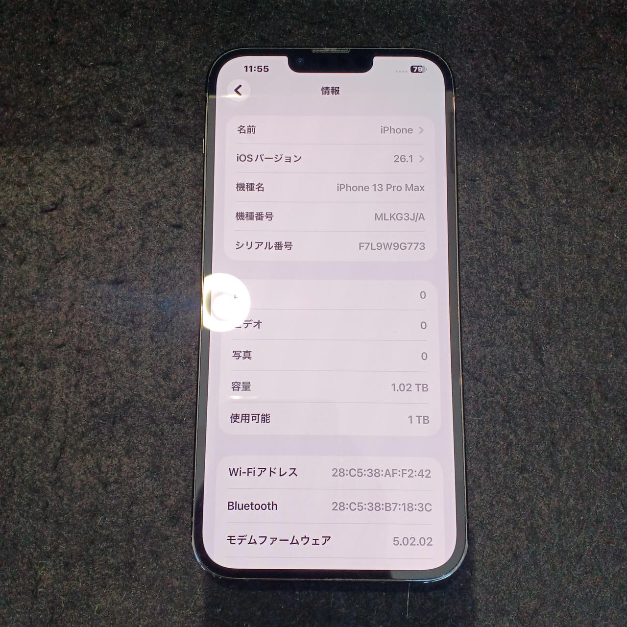 シムフリー 容量:1TB IOS:26.1 バッテリー最大容量:82% |
