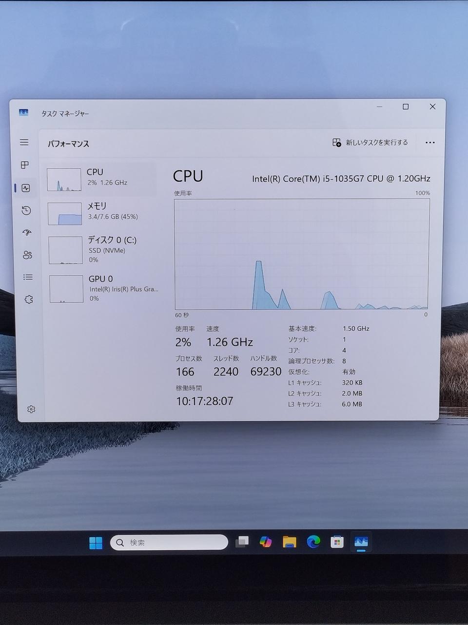 CPU:Core i5-1035G7 1.20GHz/4コア