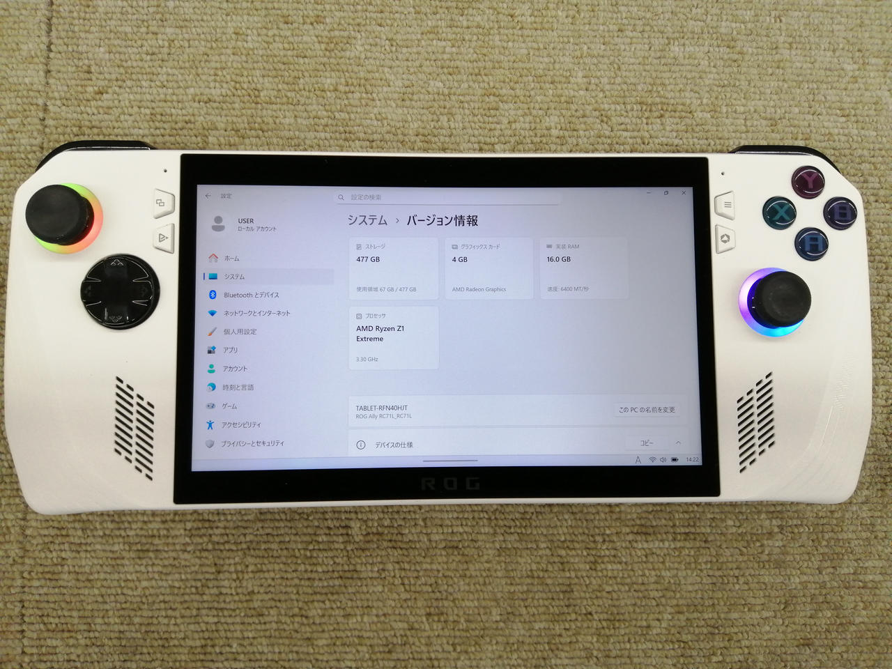 OS:Windows 11 Home(24H2) CPU:AMD Z1 Extreme@3.30GHz(8コア/16スレッド) |