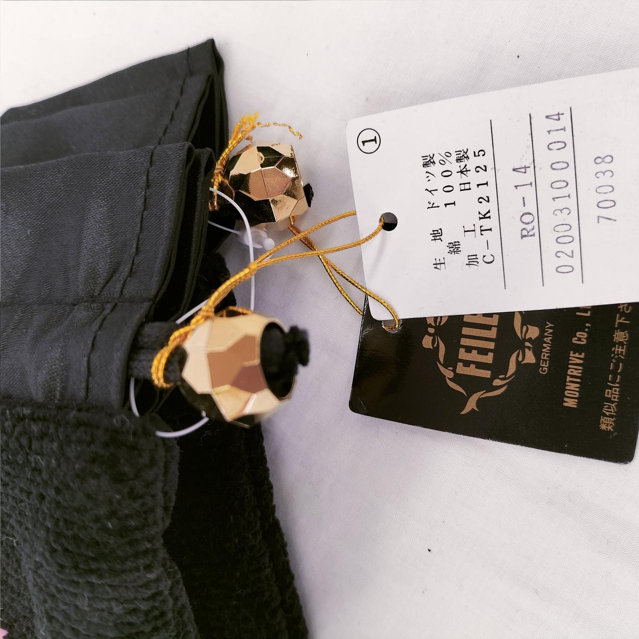黒地に華やかな花柄刺繍が施されたFEILERのハンドバッグと巾着ポーチ✕2のバックセットです。巾着ポーチは未使用品ですがハンドバッグは擦れ、ベタつきが有ります。花柄がとても可愛らしいのでファッションのワンポイントにいかがでしょうか?
