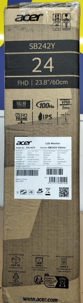 モニタサイズ:23.8インチ 解像度:フルHD(1920✕1080) パネル種類:IPSパネル リフレッシュレート(100HZ) 入力端子:D-SUB✕1/HDMI1.4✕1 スピーカー搭載 |