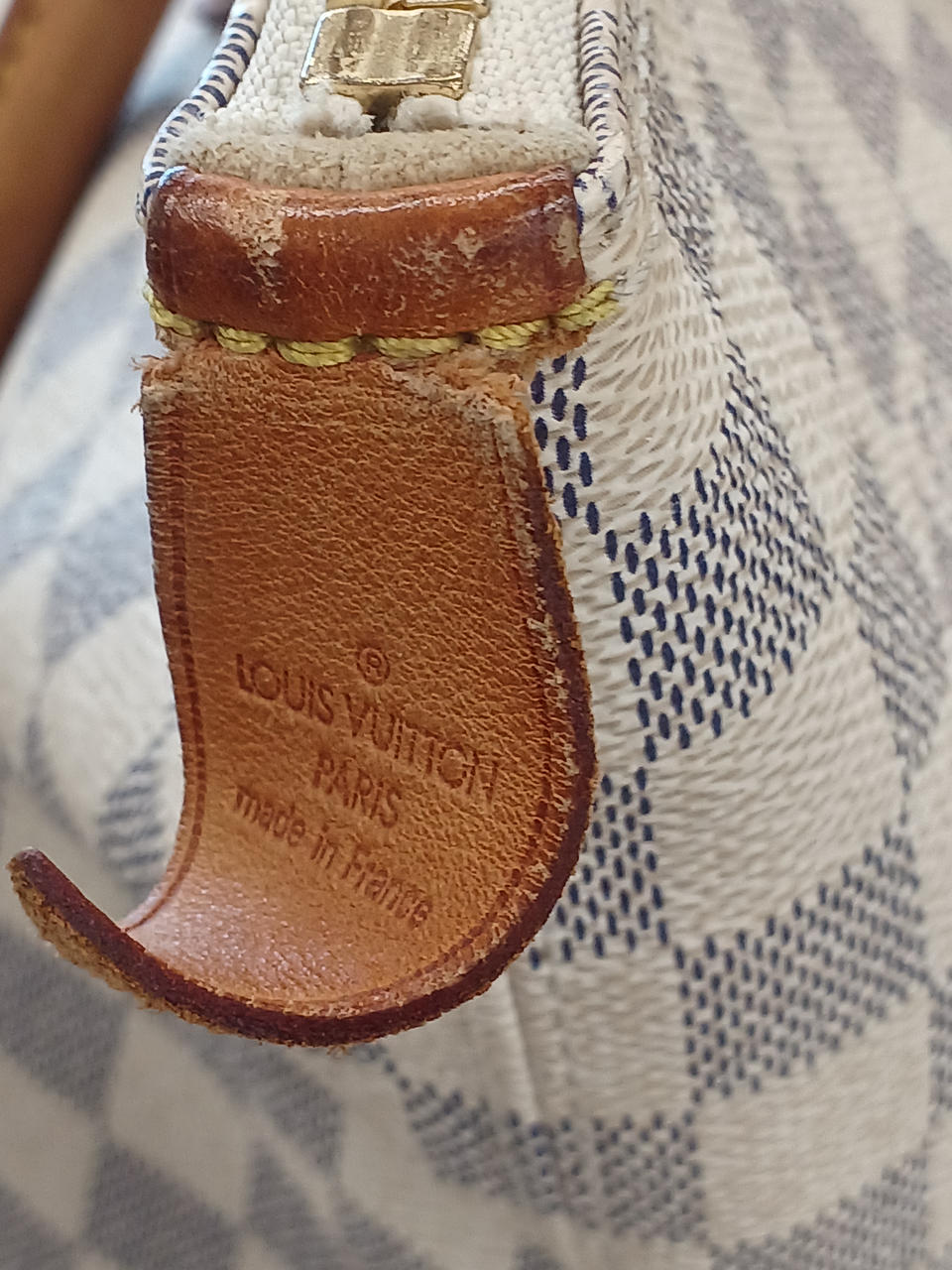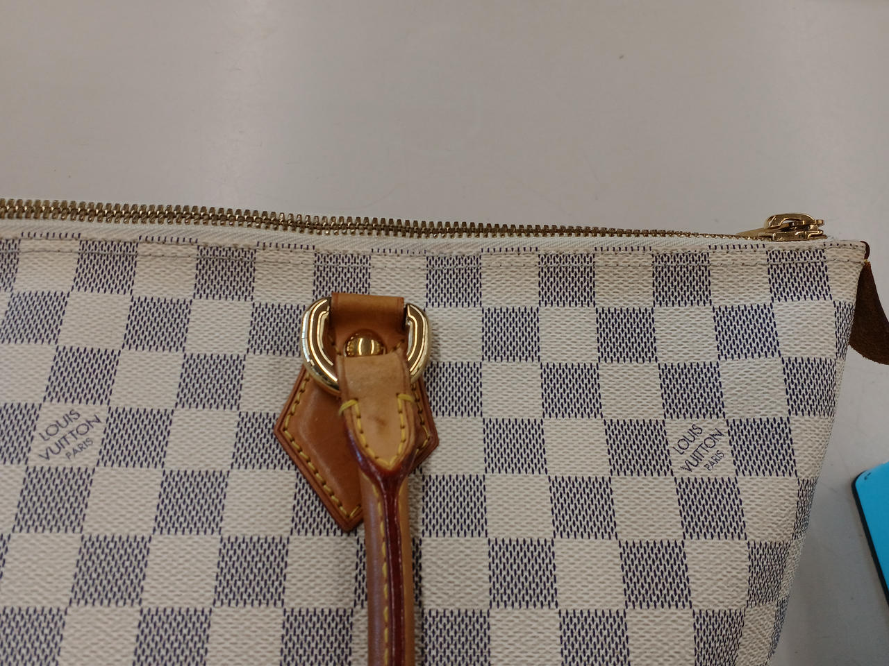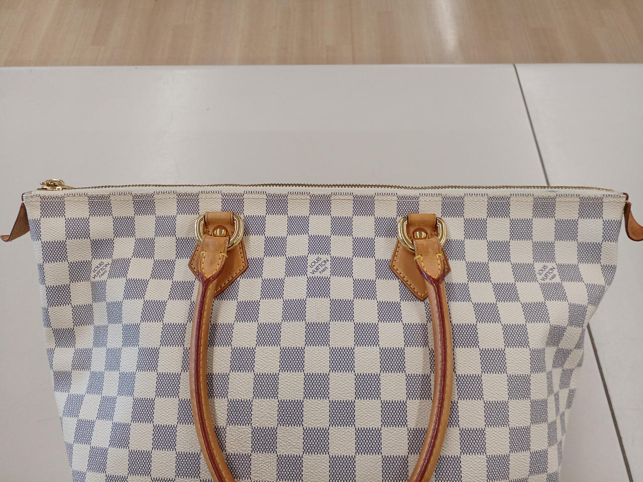 ファスナー部のロゴ革切れあり |