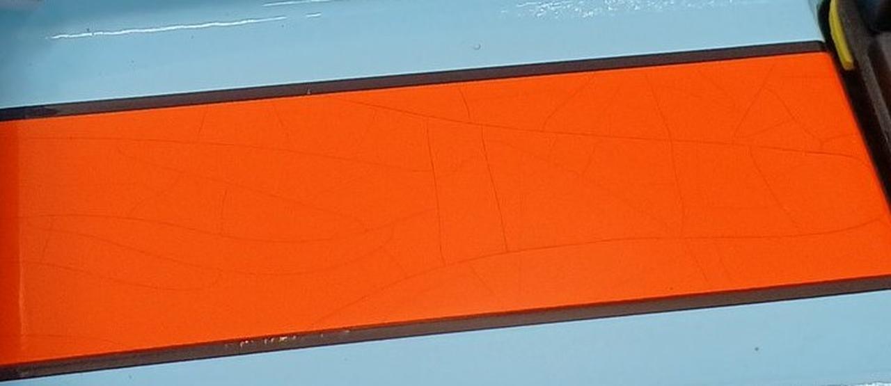 開封済み。箱日焼け・前面フィルムはがれあり。車体のオレンジラインにヒビ割れあり。 |
