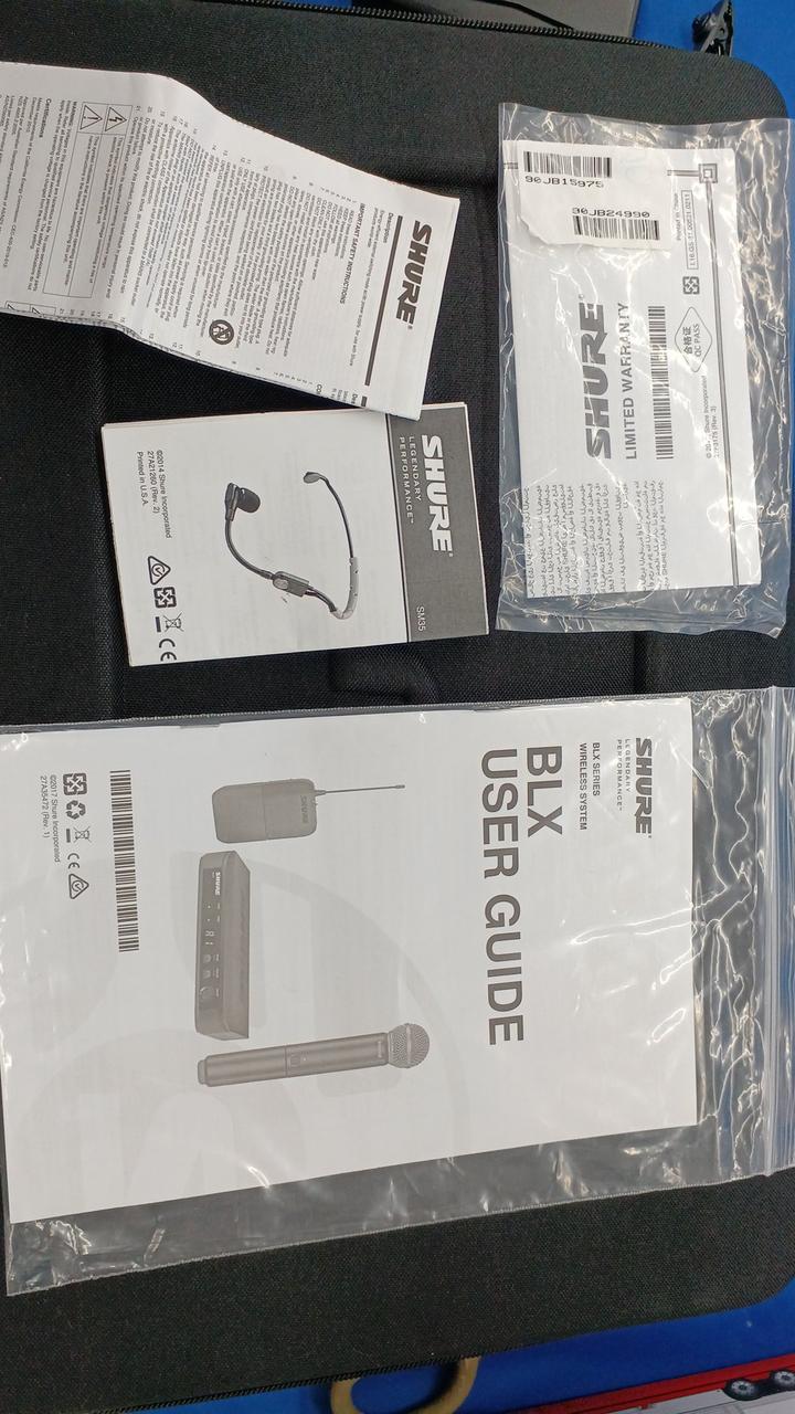 電池で連続14時間持続、長時間のライブや会議でも使用可能なBLX4受信機、BLX1送信機、SM35-TQGヘッドセットマイク |