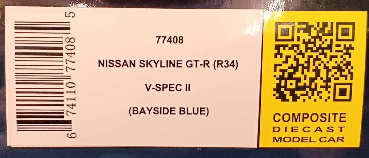 1/18 日産 スカイライン GT-R R34 Vスペック II(ベイサイドブルー) |