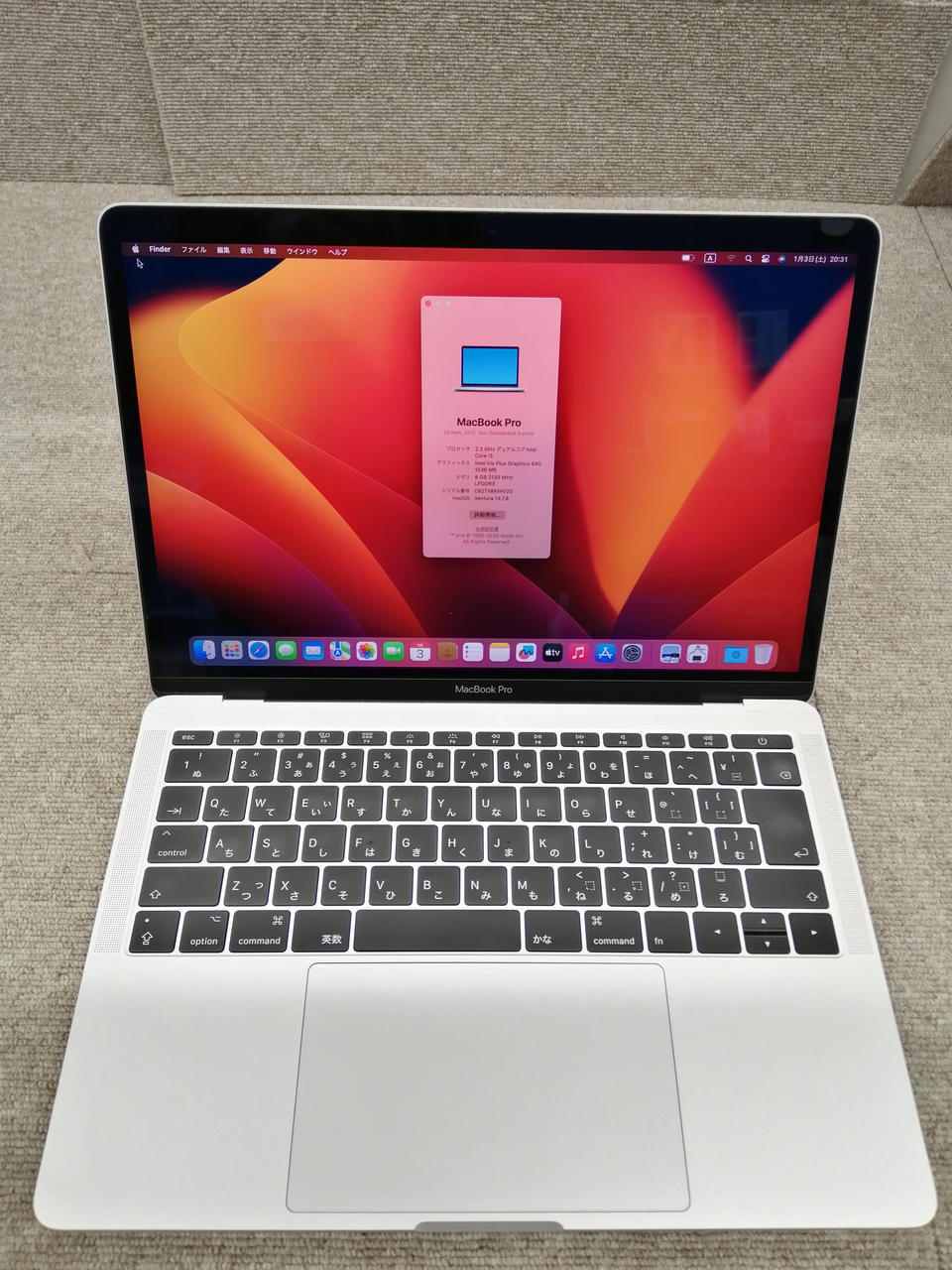 画面サイズ:13インチ(2560x1600) Wifi/Bluetooth:○ 端子:Thunderboltx2 |