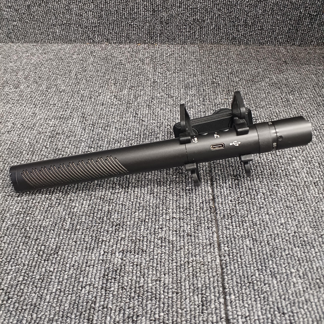3.5mmモニターニングジャックが利用可能、さらにマイク本体のダイヤルでゲインを無段階調整が可能 |