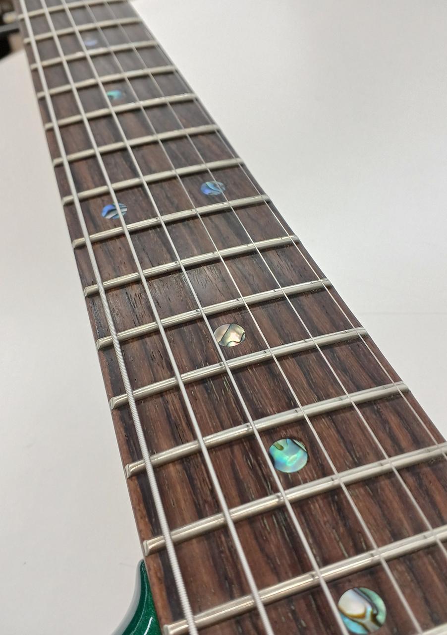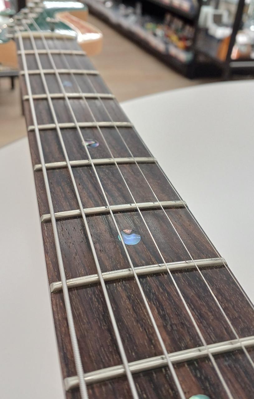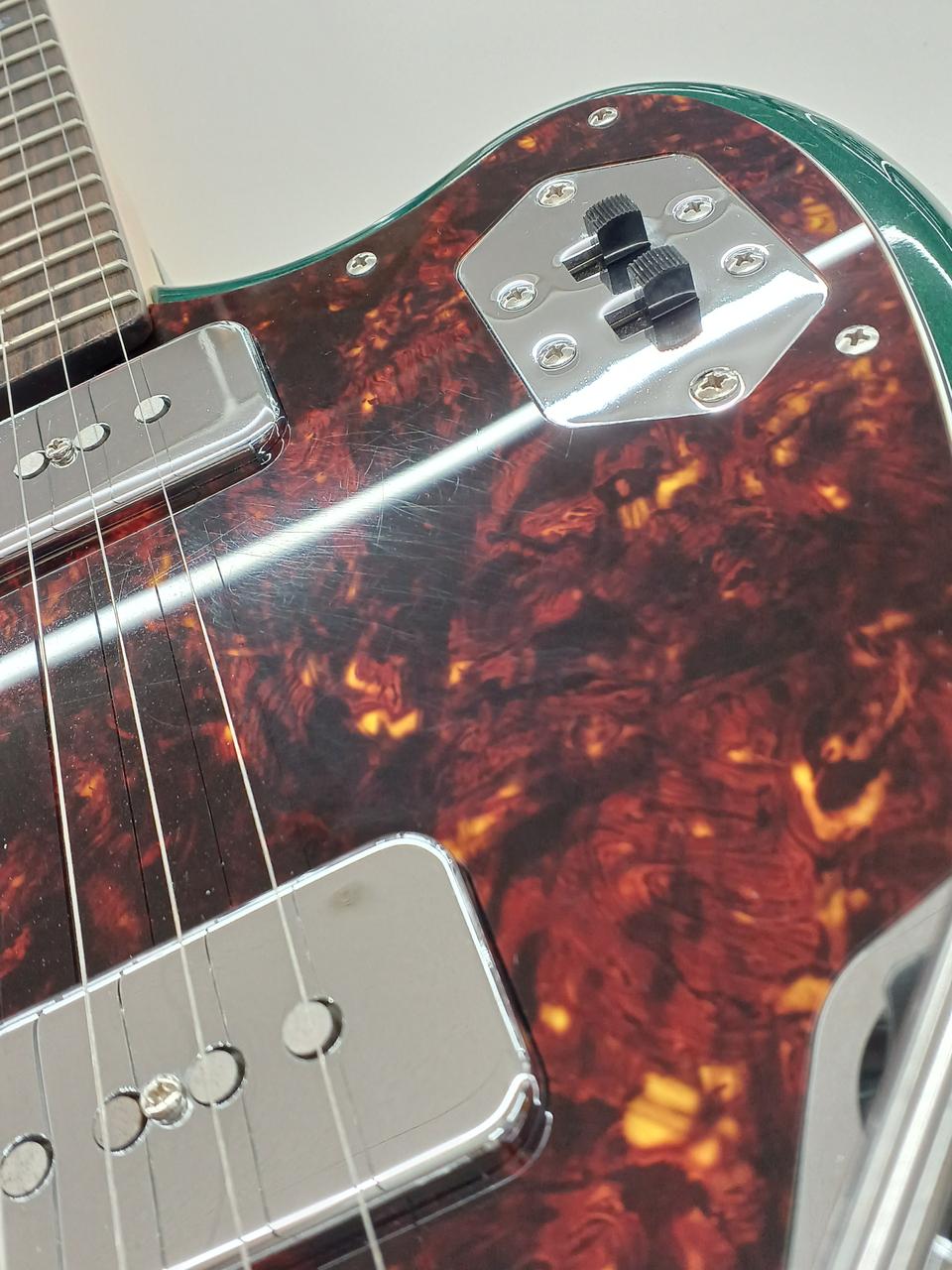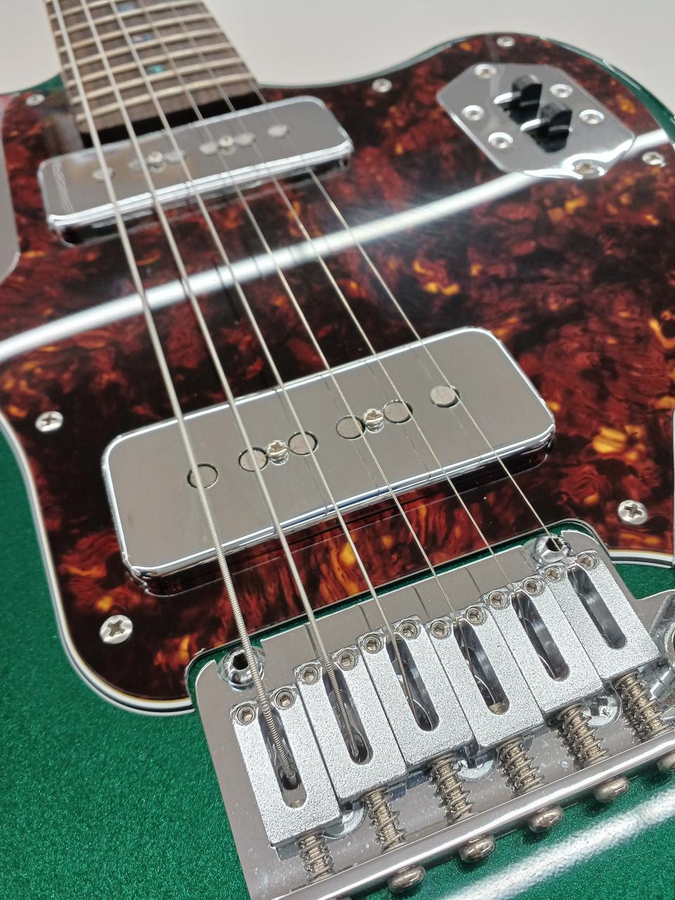 A90ピックアップを2発搭載し、より現代的にアップデートされたサウンドが魅力 ややスパークルなグリーンフィニッシュと特徴的なヘッドで、デザインも至高です |