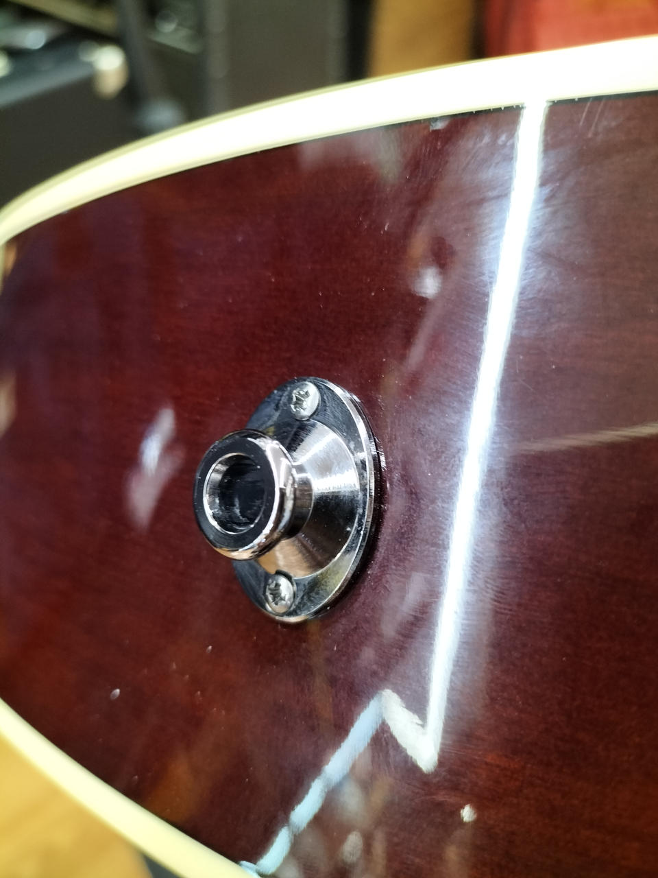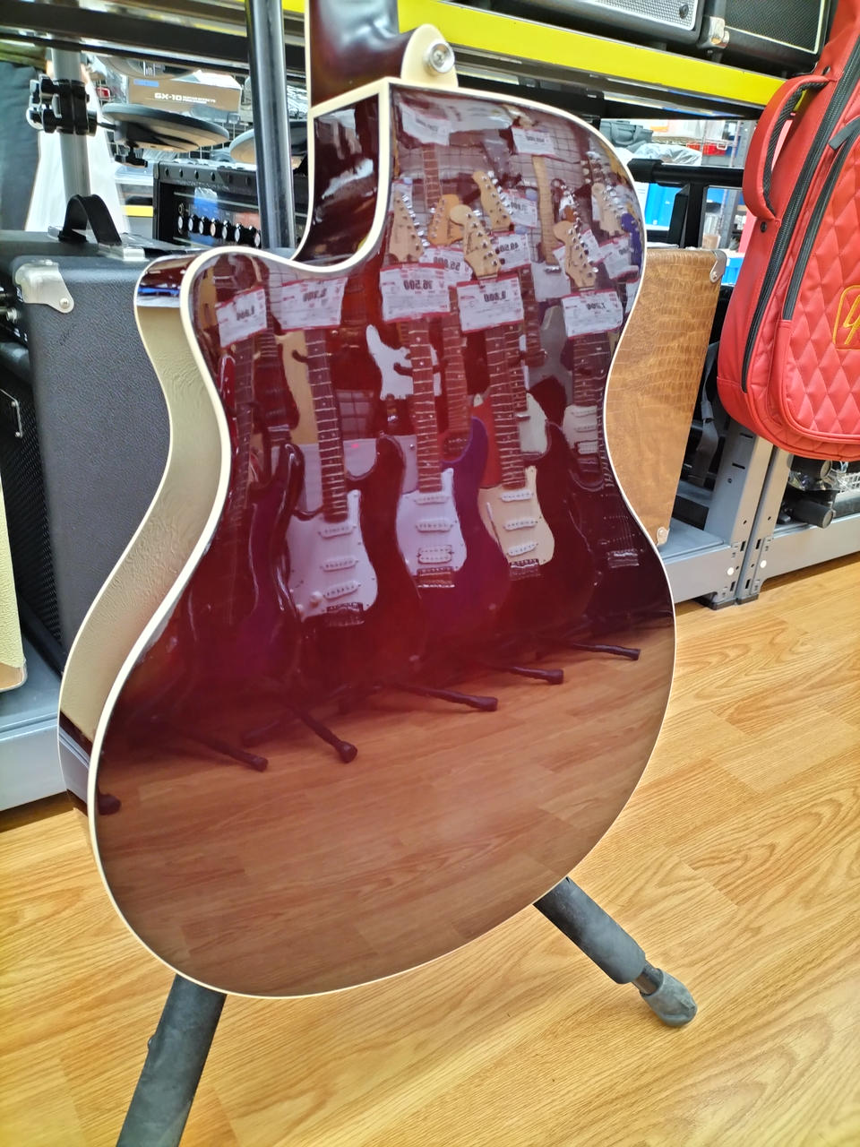 楕円形のサウンドホールシェイプが中低音を強調し、バンドアンサンブルに埋もれないパワフルなサウンドを実現します |