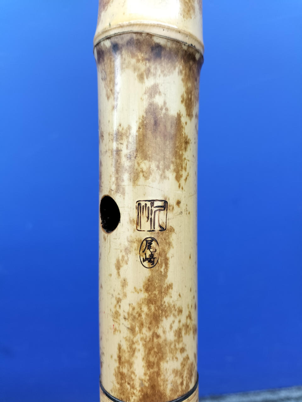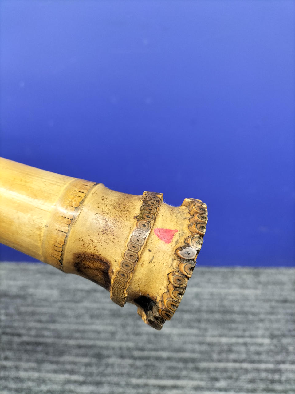 1.9尺(約57.5cm)の尺八です。赤いマーキングのような模様が付けられてます。