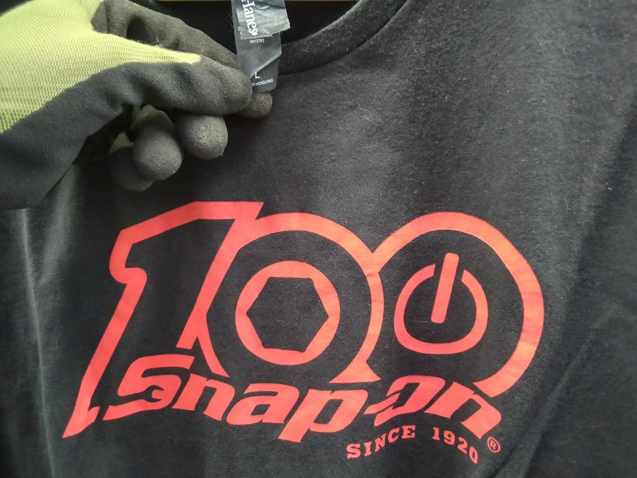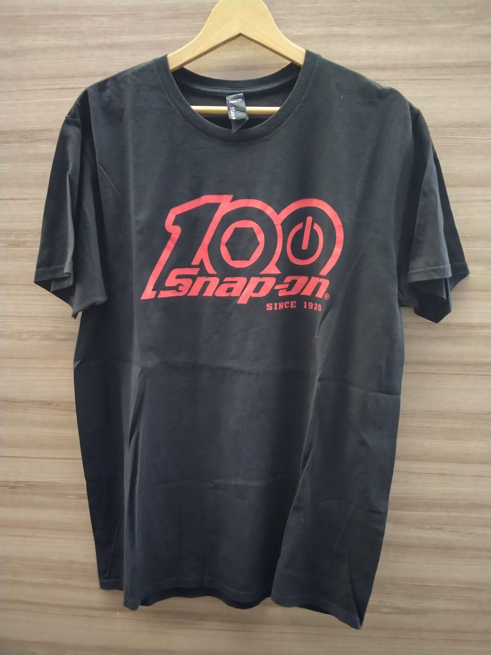 バックにSNAP-ON歴代のロゴが並んだデザインの半袖シャツです。