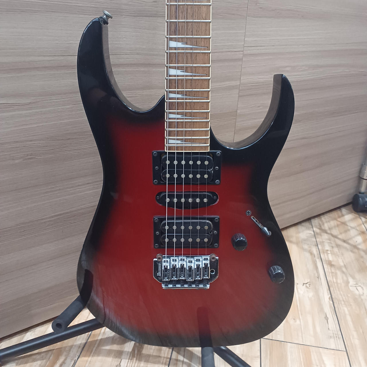 IBANEZの人気モデルRGシリーズの廉価バージョンです。HSHのPU配列と小さめのボディ形状が特徴で弾き易く、24フレット仕様でポップスからメタルまで幅広いジャンルに対応出来る1本です。 |