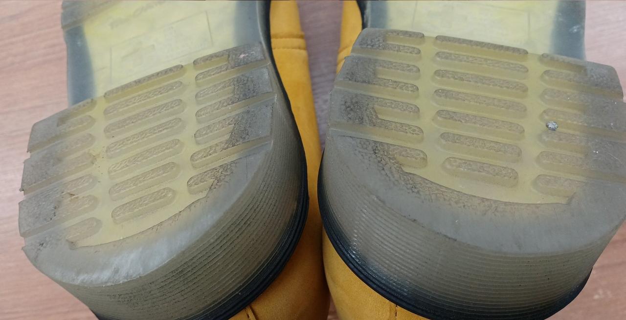 つま先部分に汚れがあり、左足の後ろ側に小傷があります。 |