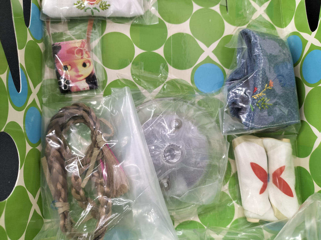 付属品は写真に写っているもので全てになります。服に汚れがあります。下着がありません。