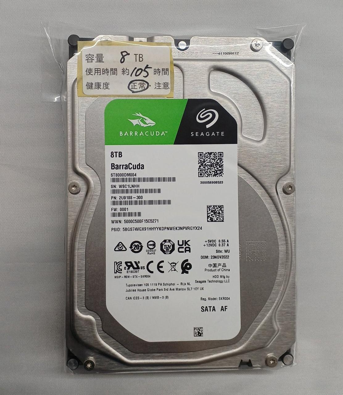 容量:8TB 使用時間:約105時間 |