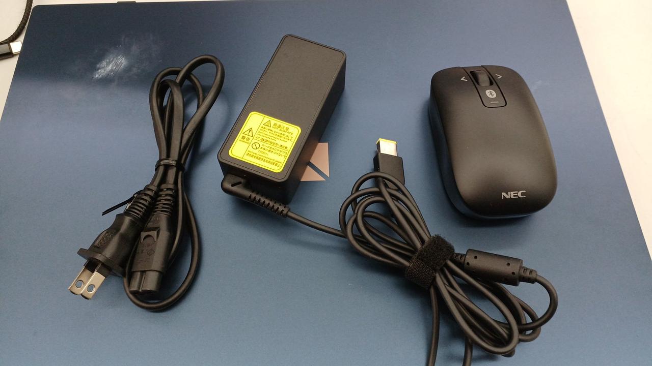 付属品は電源アダプター、付属マウスです。落ちない汚れあります。