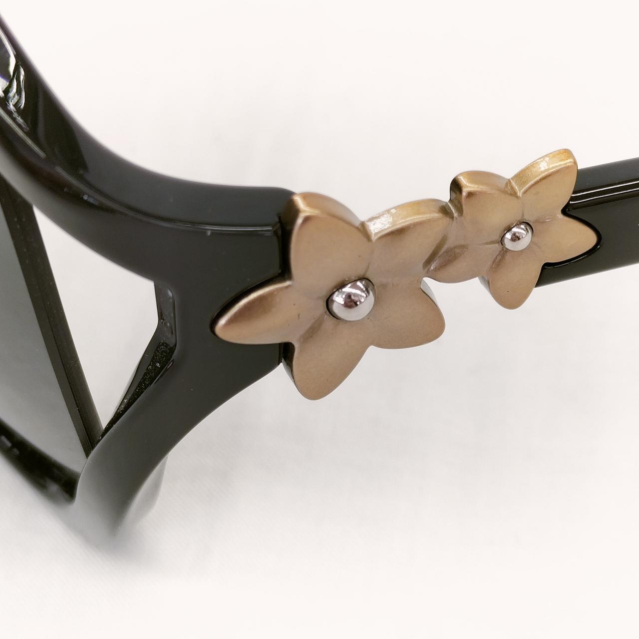 COACHのUVカットサングラスです。花柄モチーフが可愛らしくワンポイントになっています!お色はレンズ、フレーム共にブラックです。UVカット率99%なので紫外線対策にオススメです!
