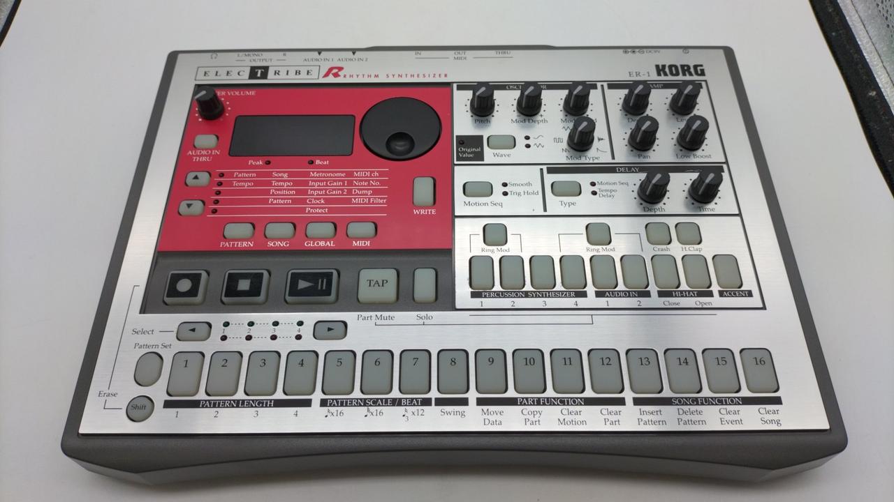 アナログ・ビート・サウンドをつくることができるリズムマシン ※キズ・ヨゴレあり 外箱キズ・ヨゴレあり 付属品:化粧箱 電源(ACアダプター) |