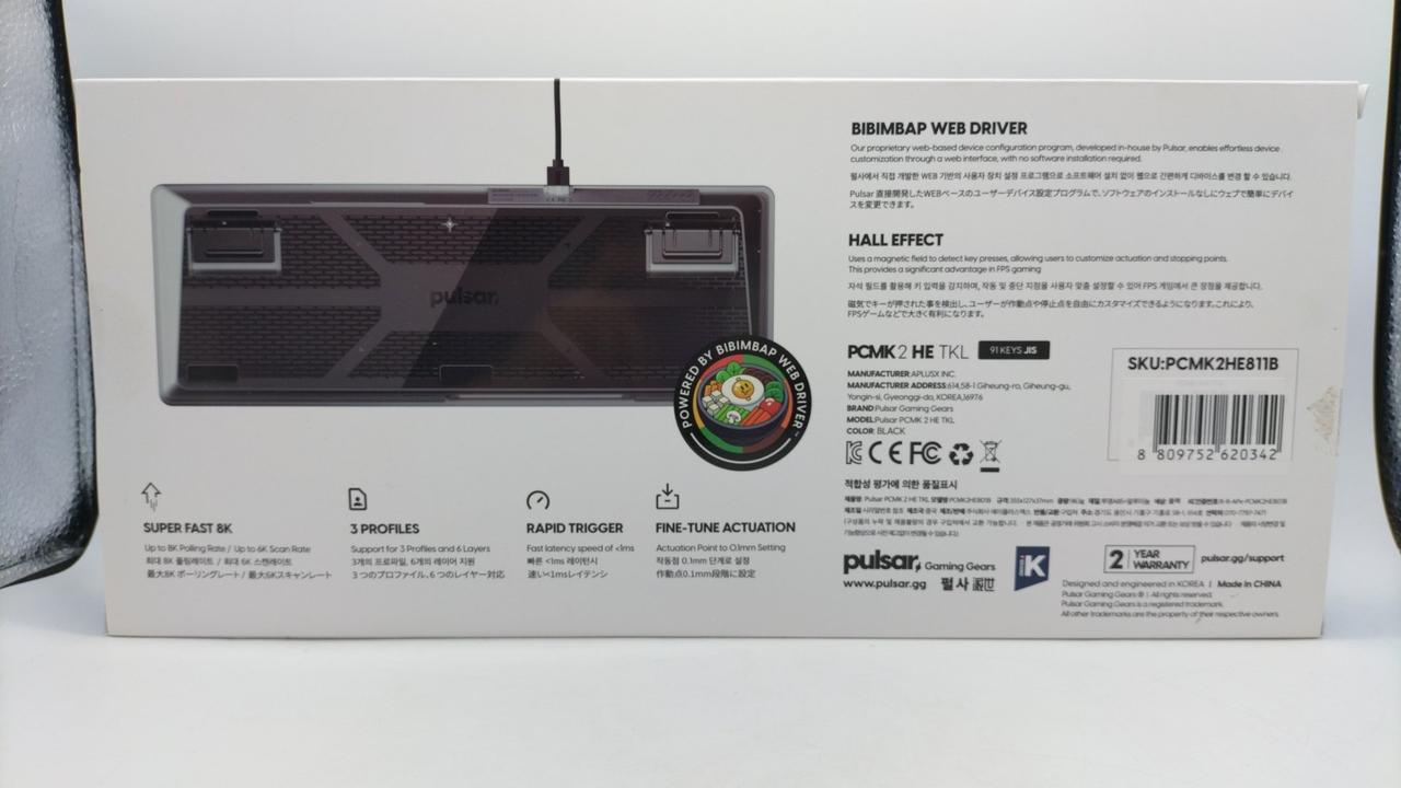 キー数:91キー テンキーレス 接続:有線 ラピッドトリガー:◯ キー刻印:アルファベットのみ RGBバックライト:◯ 付属品:化粧箱 取扱説明書 ステッカー USBケーブル キープラー ※化粧箱破れあり |