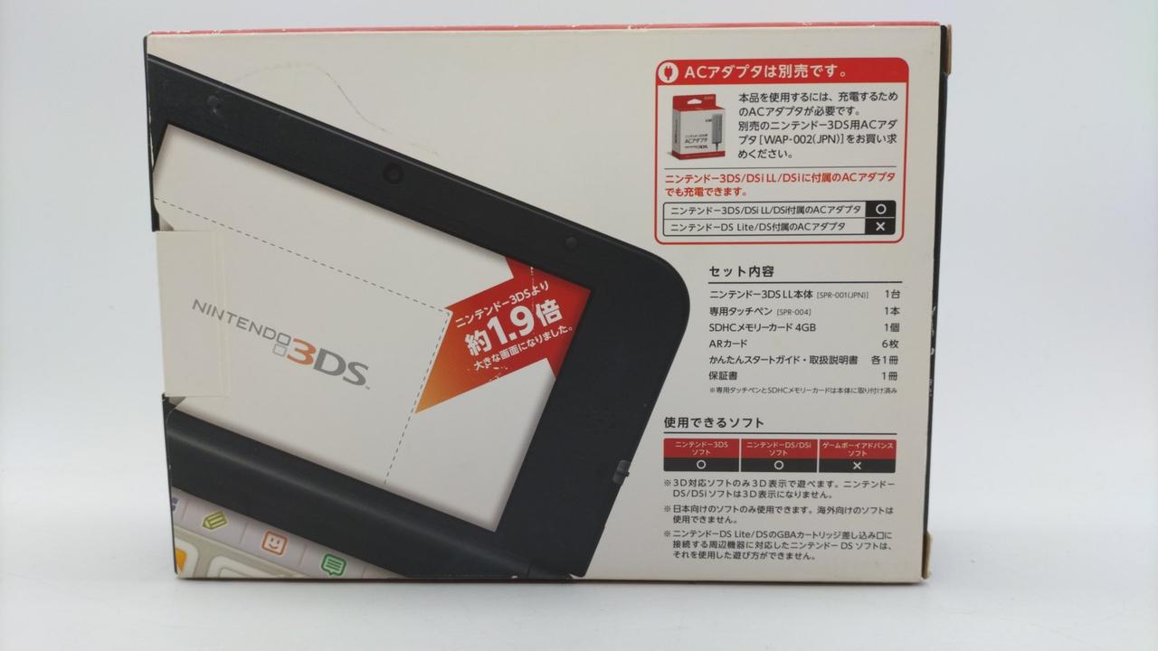 さらにダイナミックな視覚効果をお楽しみいただけるようになったニンテンドー3DS LL 付属品:化粧箱 タッチペン SDカード4GB |