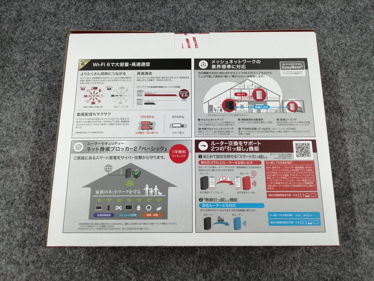 無線LAN規格:Wi-Fi 6 (11ax) 接続環境:3階建て(戸建て)/4LDK(マンション)/30台/10人 |