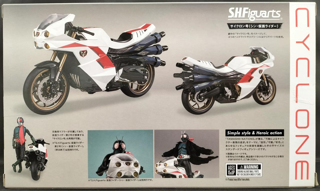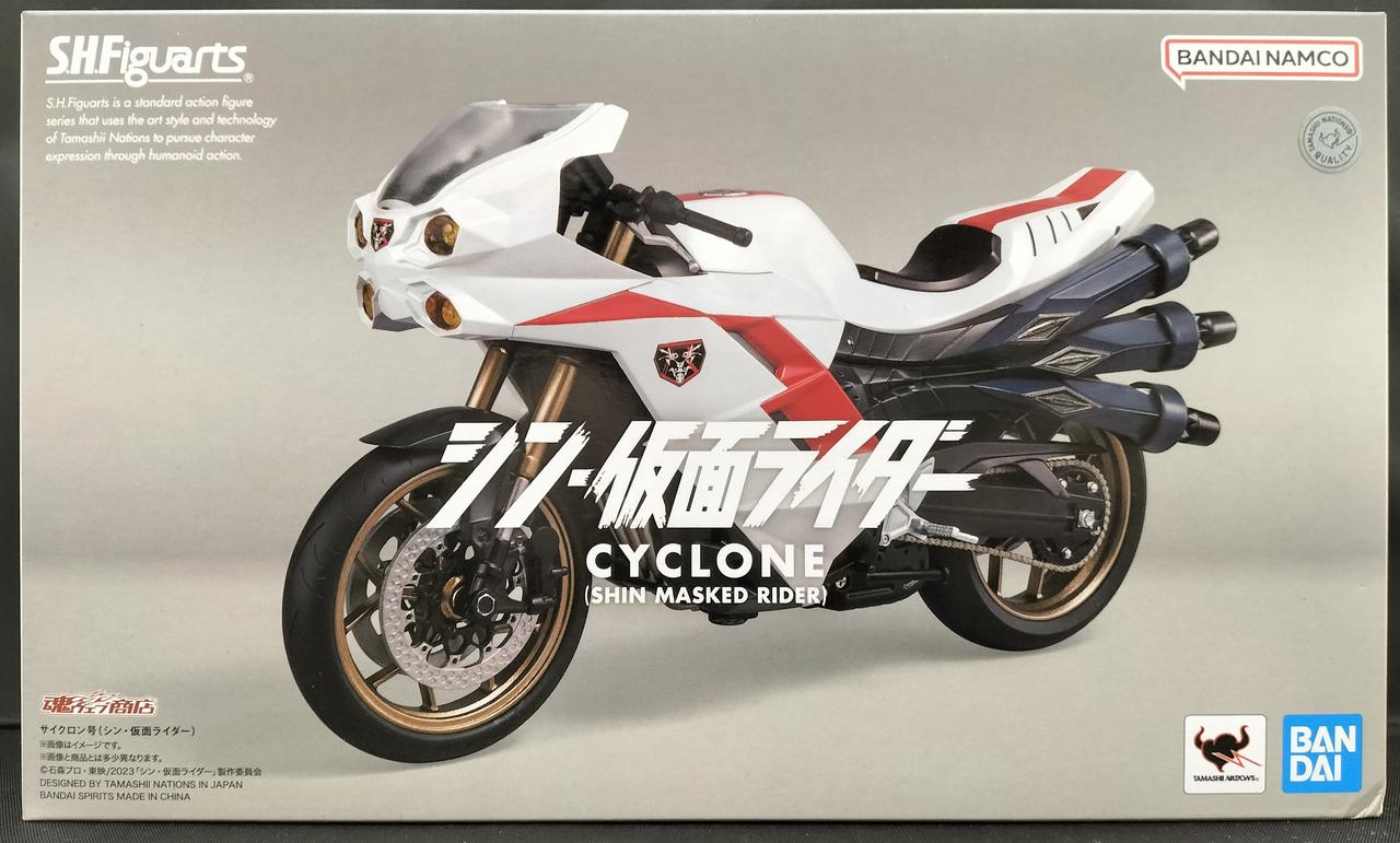 『シン・仮面ライダー』より仮面ライダーの搭乗するマシン「サイクロン号」がS.H.Figuartsで立体化。劇中の「サイクロン号」をイメージして、4つのヘッドライトやスクリーンにはクリアパーツを使用し、パーツごとに異なる質感を彩色と成型色パーツの組み合わせで表現。さらに、交換用マフラーを使用することで仮面ライダー第2号が搭乗する「サイクロン号」も再現可能。 |