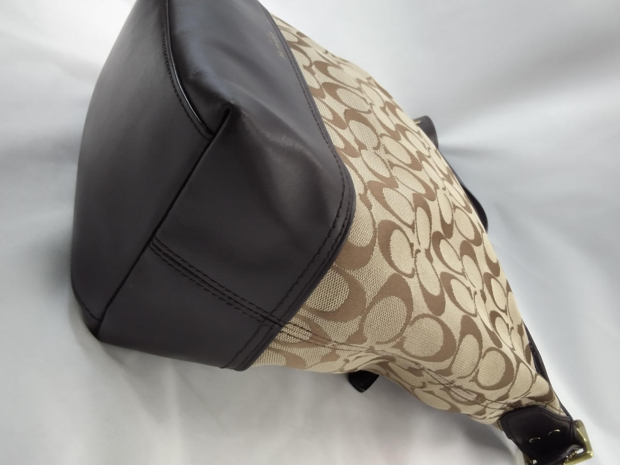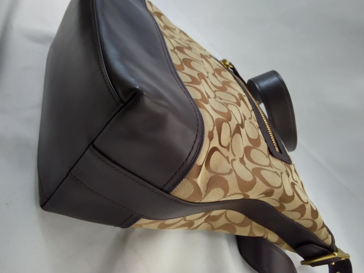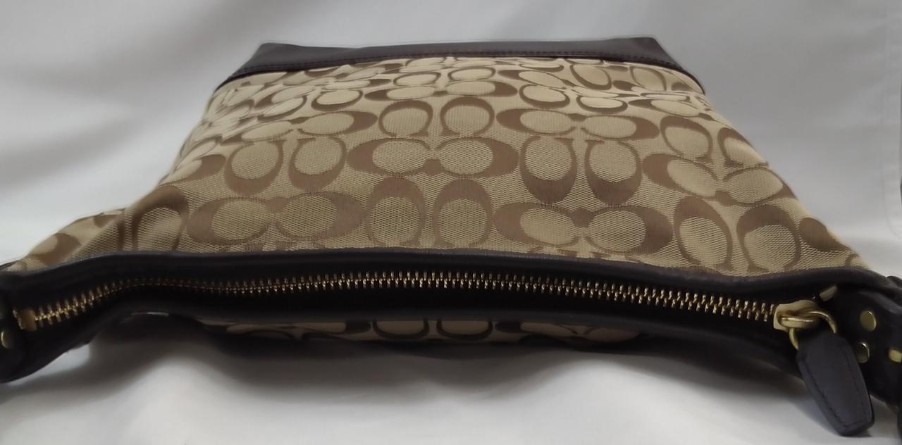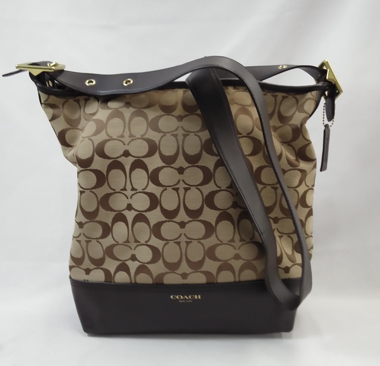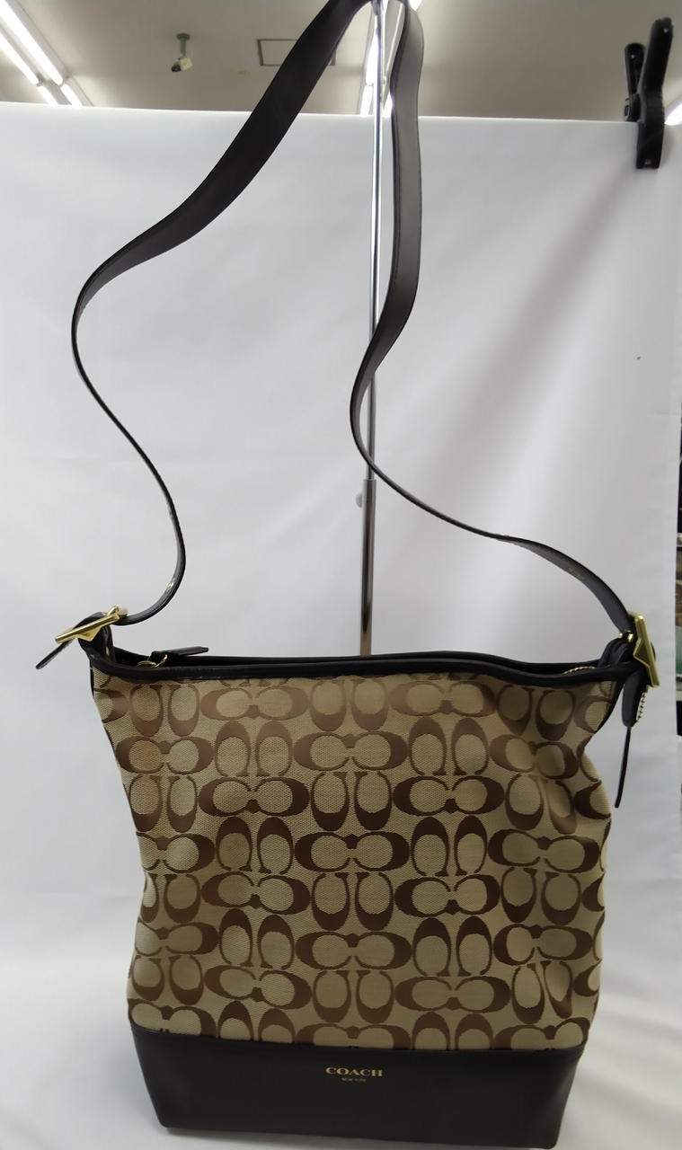 ショルダー、下部、ファスナー、COACHタグはダークブラウン色 |