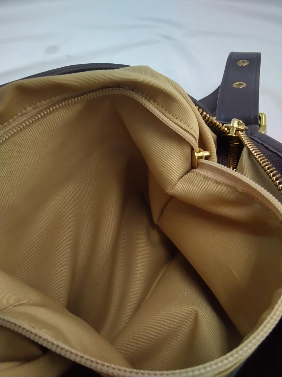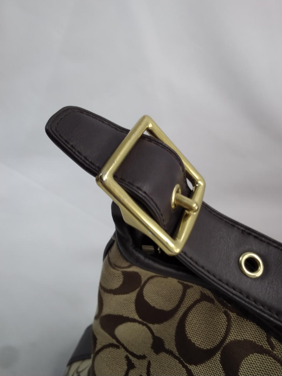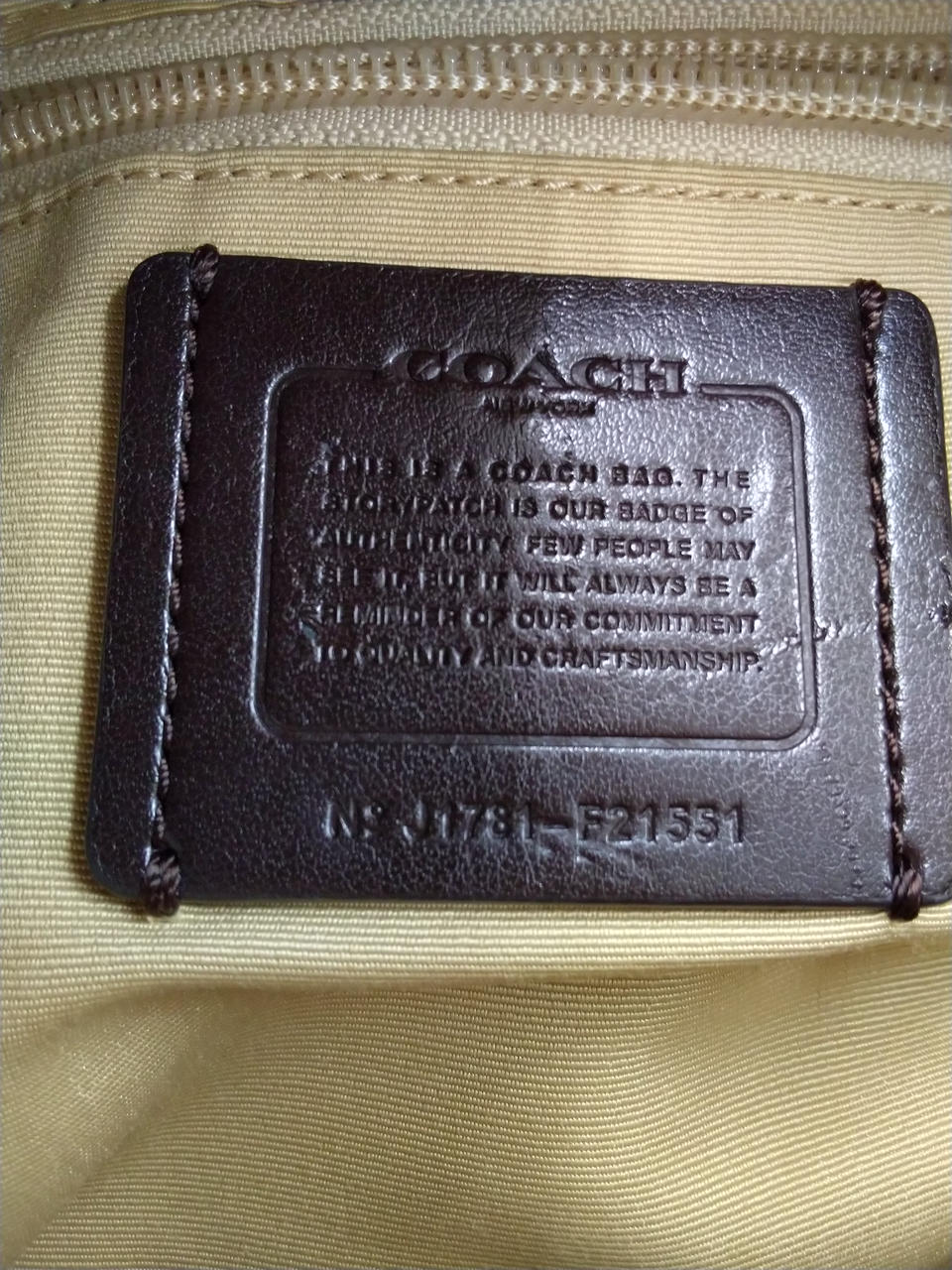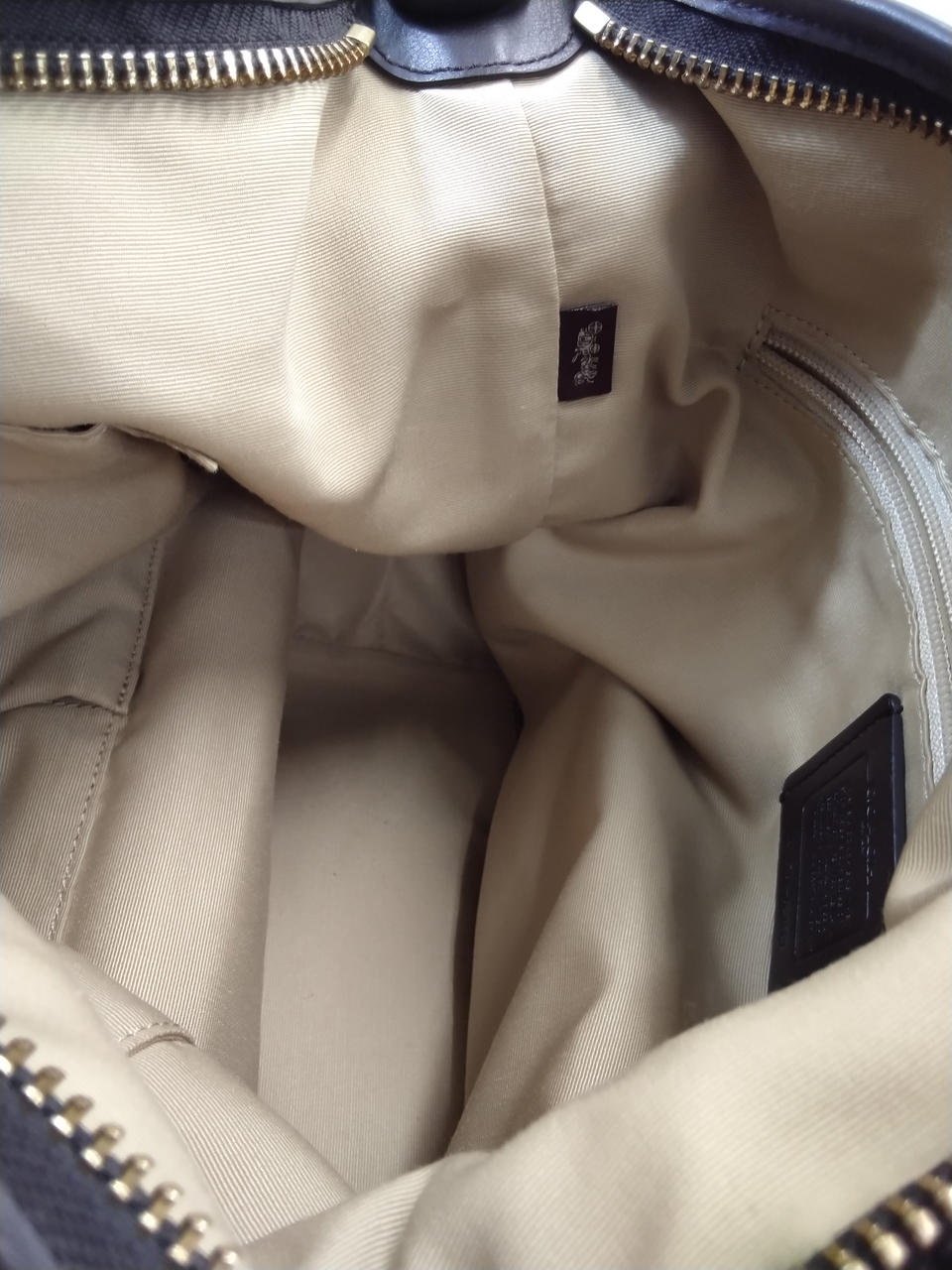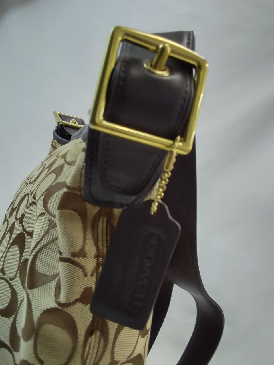 ショルダー、下部、ファスナー、COACHタグはダークブラウン色 |