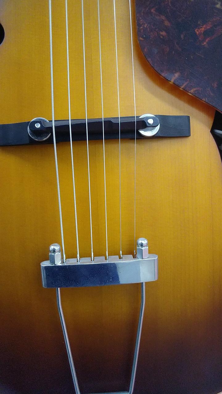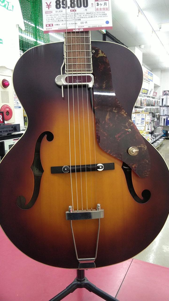 アーチトップギターにフローティングPUを取り付けた、原始的なエレクトリックのニューヨーカー。トップはソリッドのスプルースを、サイドバックにはメイプルを使用しています。マホガニーのファットなVネックも50年代らしさを感じます。PUにはヴィンテージでも人気の高いDearmond PUを搭載。