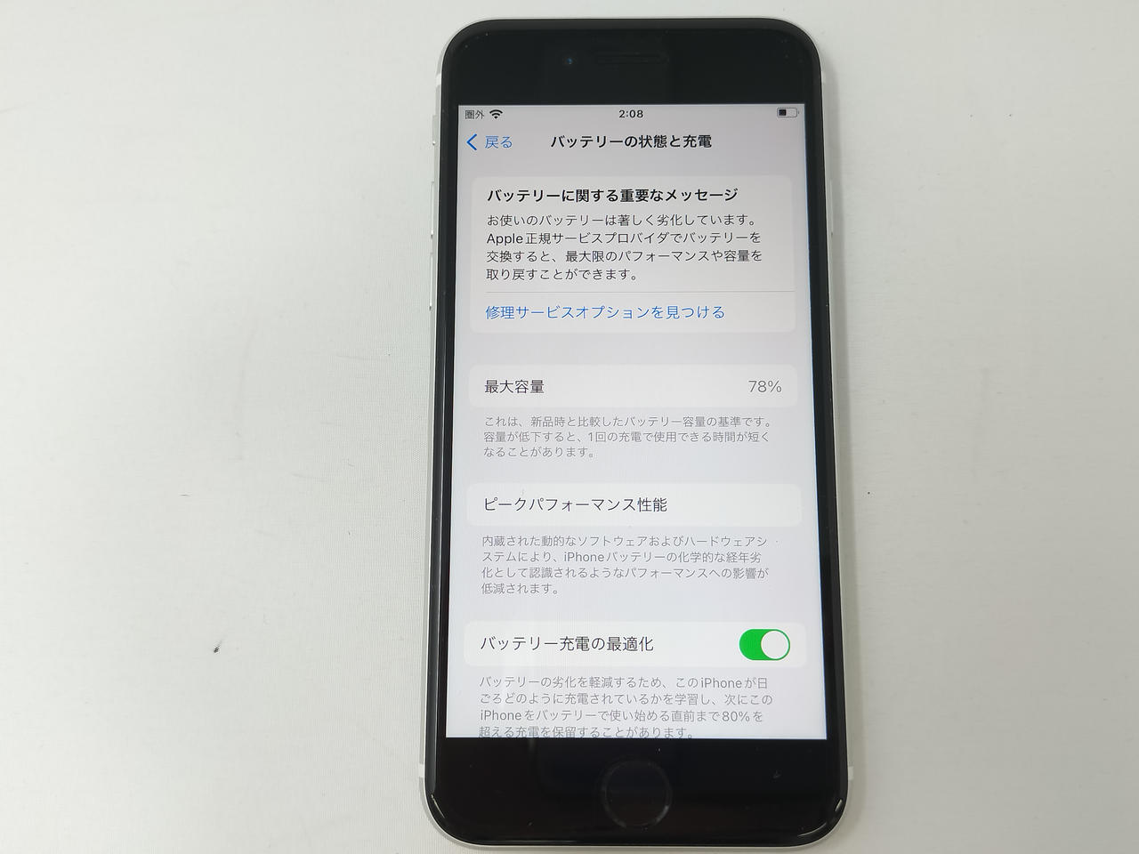 バッテリー最大容量:78%。このためジャンク |