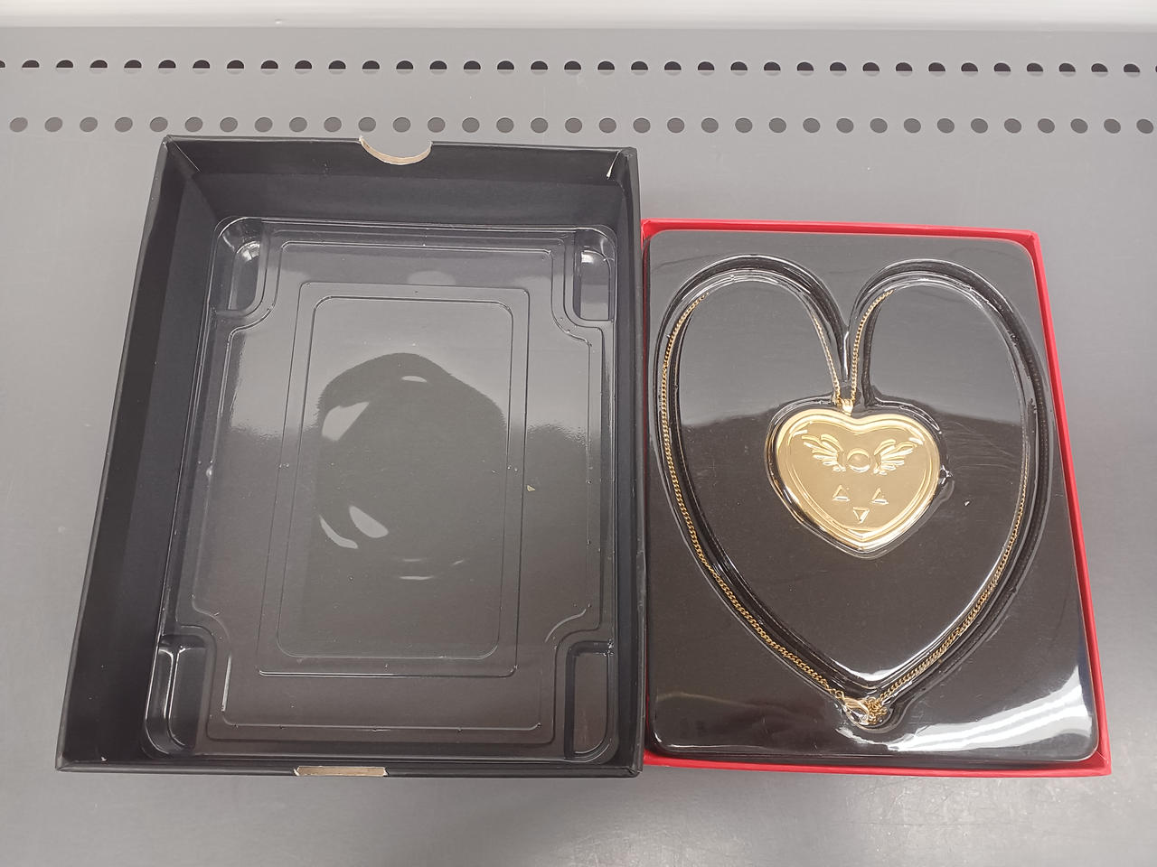 ペンダントのみとなります。箱にイタミと破損があります。汚れがあります。フタのロックができないです。